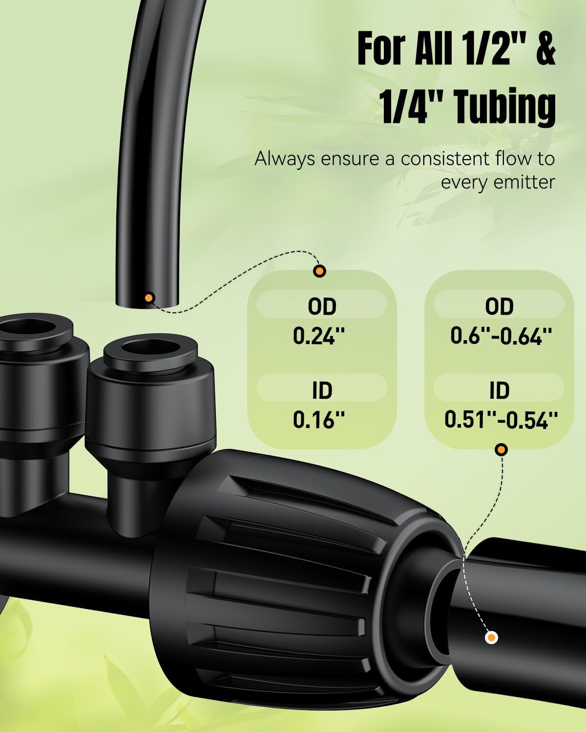 • Optimized Water Distribution: Enjoy balanced pressure throughout your irrigation system! Secure locking mechanism in the 1/2'' to 1/4'' drip irrigation fitting effectively prevents leaks or budging. Always ensure a consistent flow to every emitter
