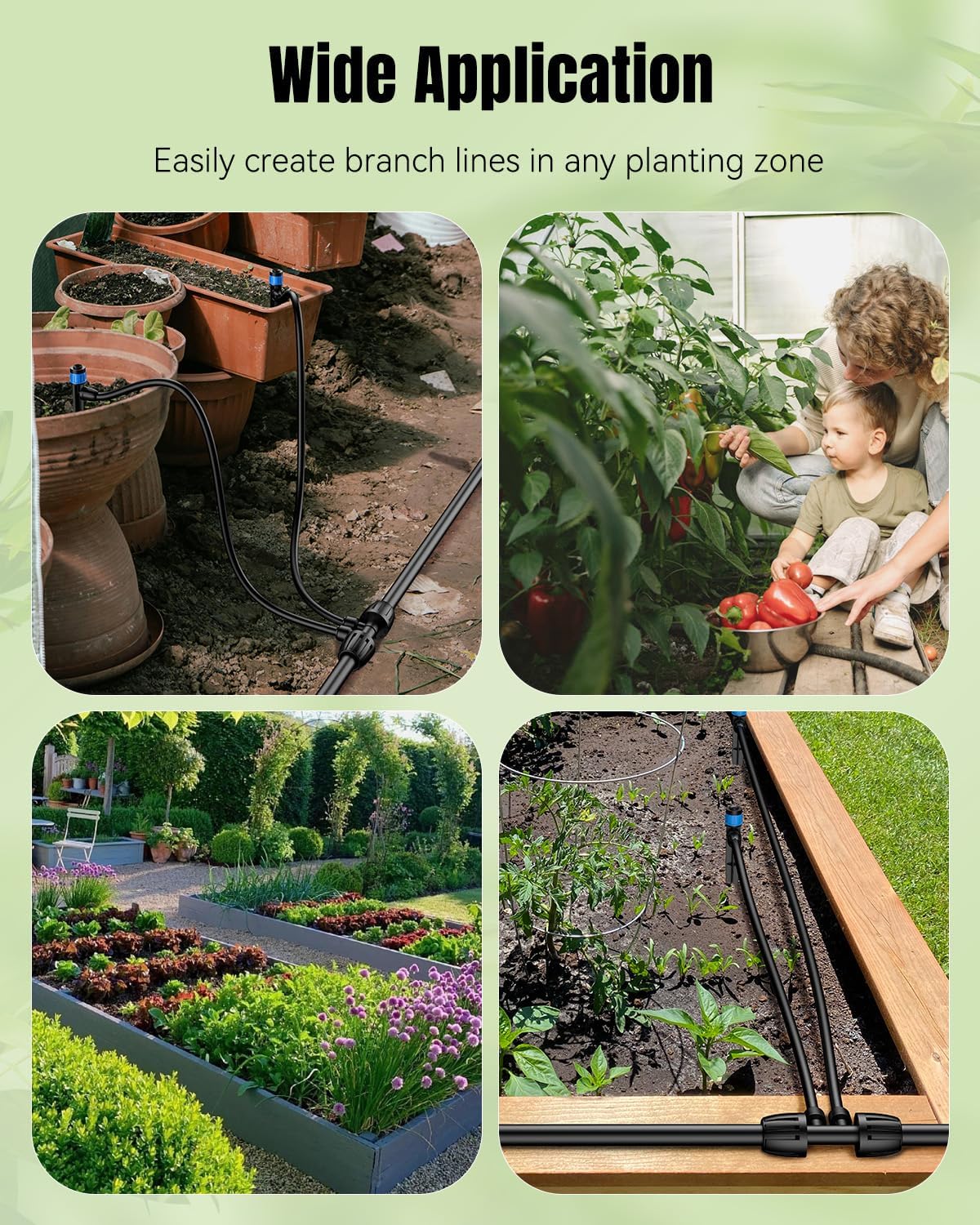 • Wide Application: Ideal drip irrigation parts for creating branch lines in any planting zone, including raised beds, vegetable gardens, greenhouses, patios, lawns, and more. Effortlessly bring life to every corner of your space