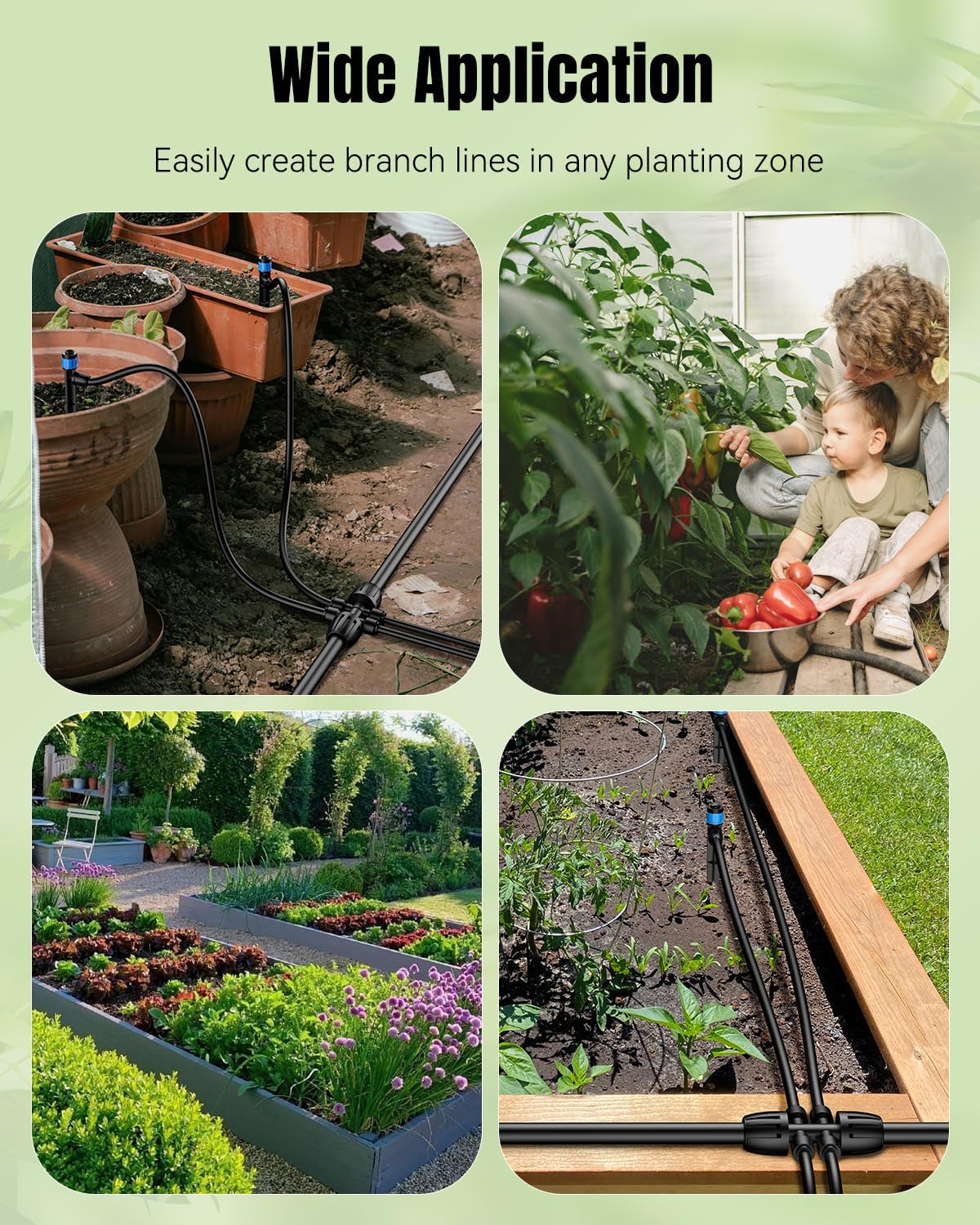 • Wide Application: Ideal drip irrigation parts for creating branch lines in any planting zone, including raised beds, vegetable gardens, greenhouses, patios, lawns, and more. Effortlessly bring life to every corner of your space