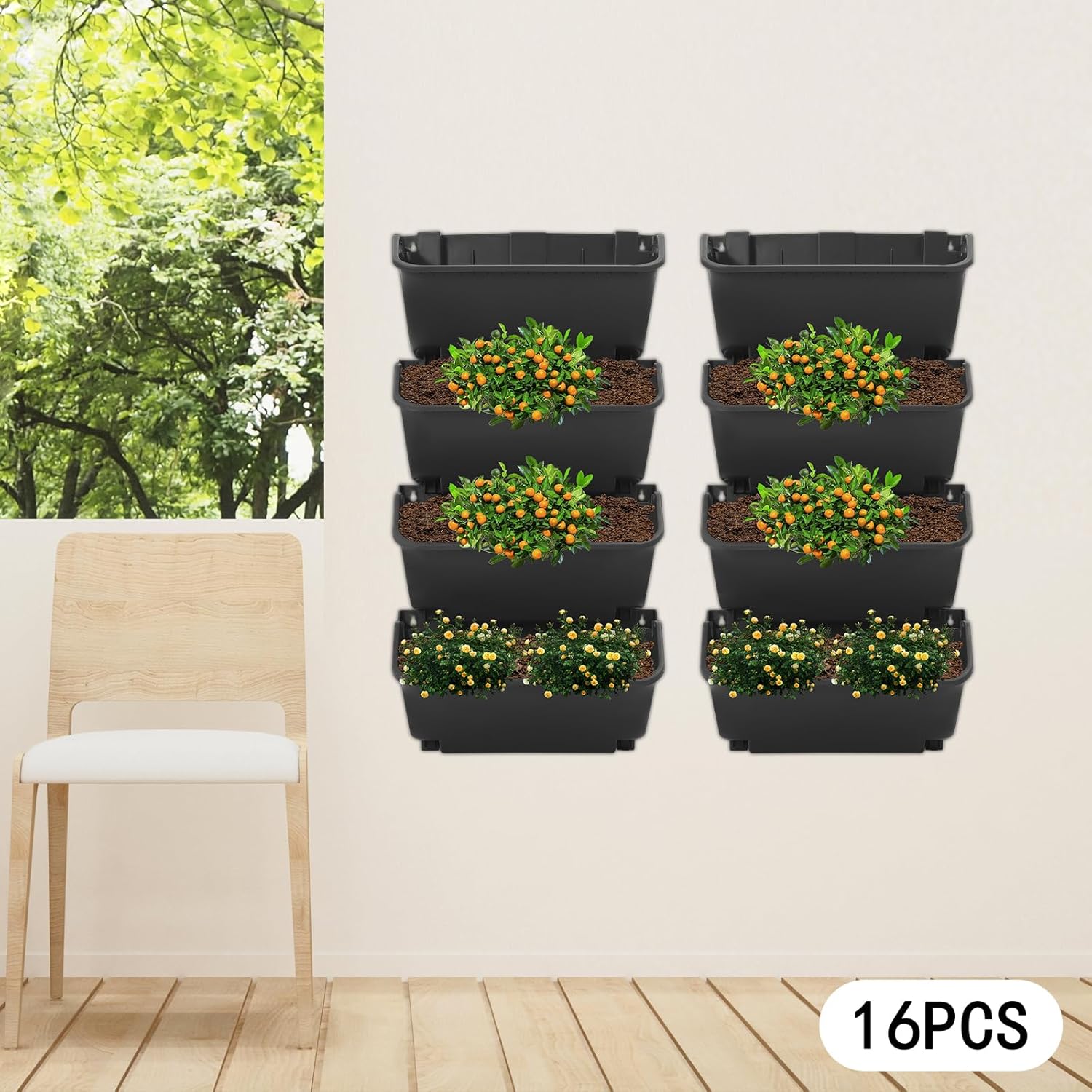 • Modular Wall-Mounted & Stackable Design - This 16-piece vertical wall planter set features a snap-fastener connection system for easy stacking and installation. You can freely combine them to create a customized green wall on any indoor or outdoor surface—perfect for small balconies, large terraces, or commercial building facades.
