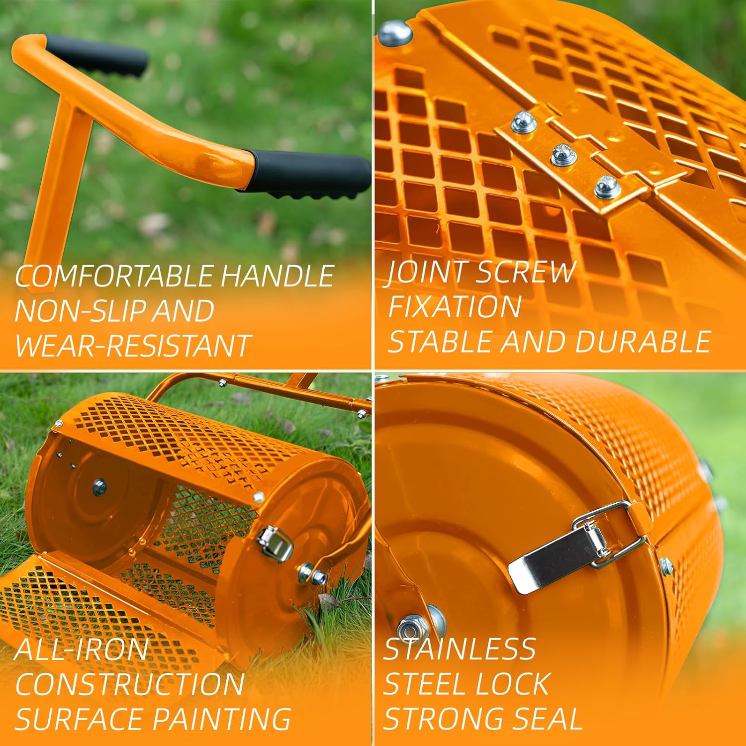 • 【Double-Side Latches Design】 This metal mesh lawn spreader is equipped with 2 side latches to keep the drum surface smooth during operation, preventing any jamming. It serves as a compost spreader for the lawn, ensuring stability, avoiding wear or tear, and being long-lasting and durable.