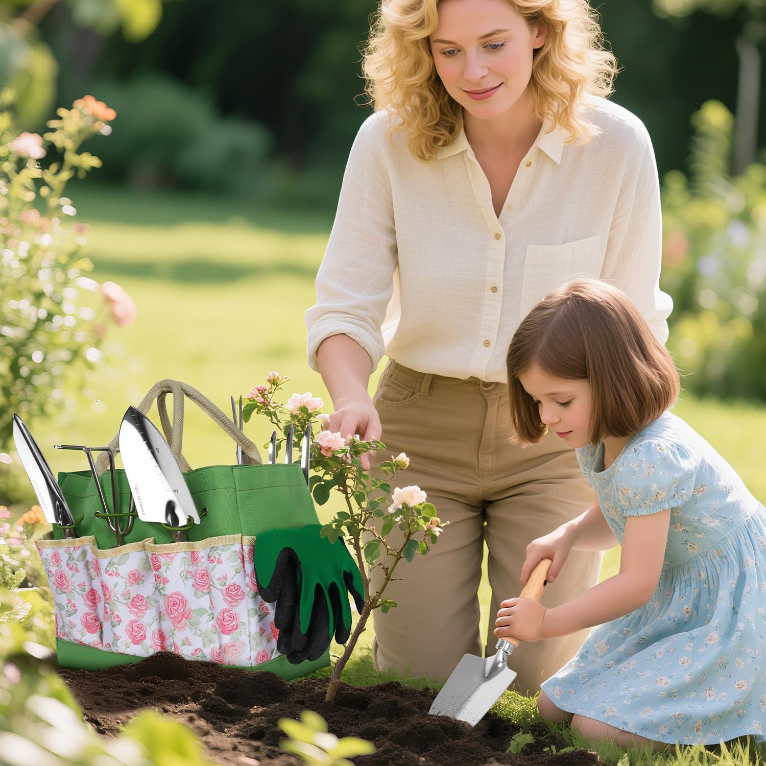 • [ Floral Tote for Easy Storage ] Keep all gardening kits organized in the included tote bag, made from sturdy Oxford cloth. Its spacious design and multiple pockets allow for neat storage, while the lightweight build makes it easy to carry around the garden.