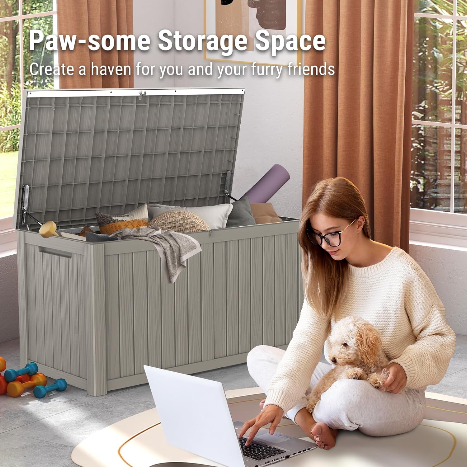 • 【Smooth & Secure Operation】- Designed with dual side hydraulic hinges, the lid opens effortlessly and stays in place, allowing easy access to your items, the slow closing mechanism ensures safe operation for family members, while the lockable lid (lock not included) adds an extra layer of security for your outdoor essentials