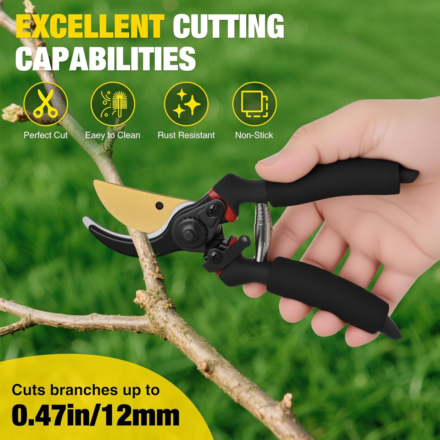 • ULTRA SHARP BLADE: Yesker pruning shears are made of high-quality 50# carbon steel, with surface electroplating and titanium plating. They have excellent durability, excellent sharpness and edge retention, and are rust-proof and corrosion-resistant, ensuring smooth and efficient pruning every time. This is a perfect shears gardening tools that can easily meet your pruning needs