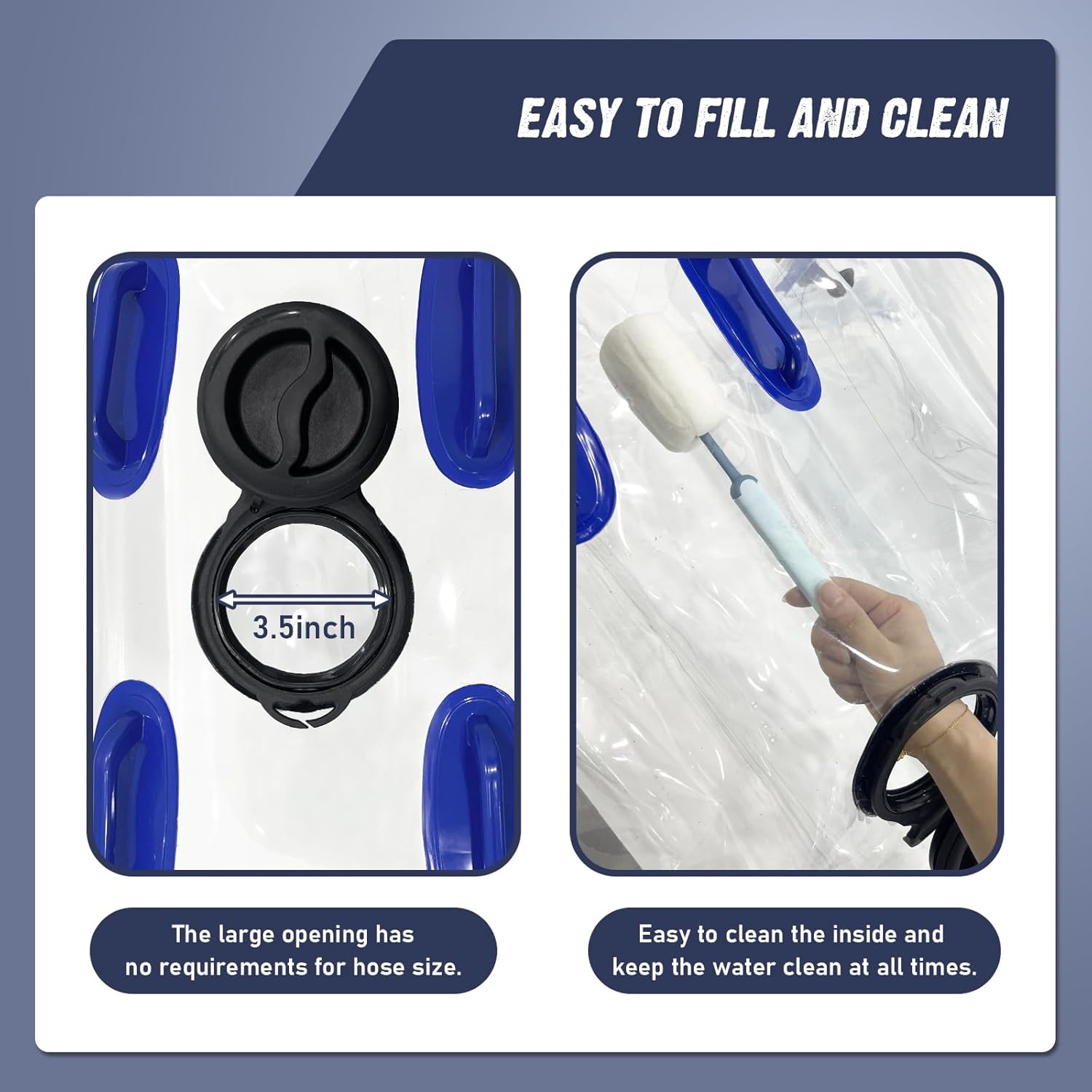• INNOVATIVE DESIGN WATER CONTAINER: Our high transparency material enhance the visibility of the water container to avoid water stored in the dark color bladder with invisible dirt effectively. Help keep your water clean for washing and flushing. Molded-in graduation marks in gallons & liters allow easy monitoring of water volume in real time.