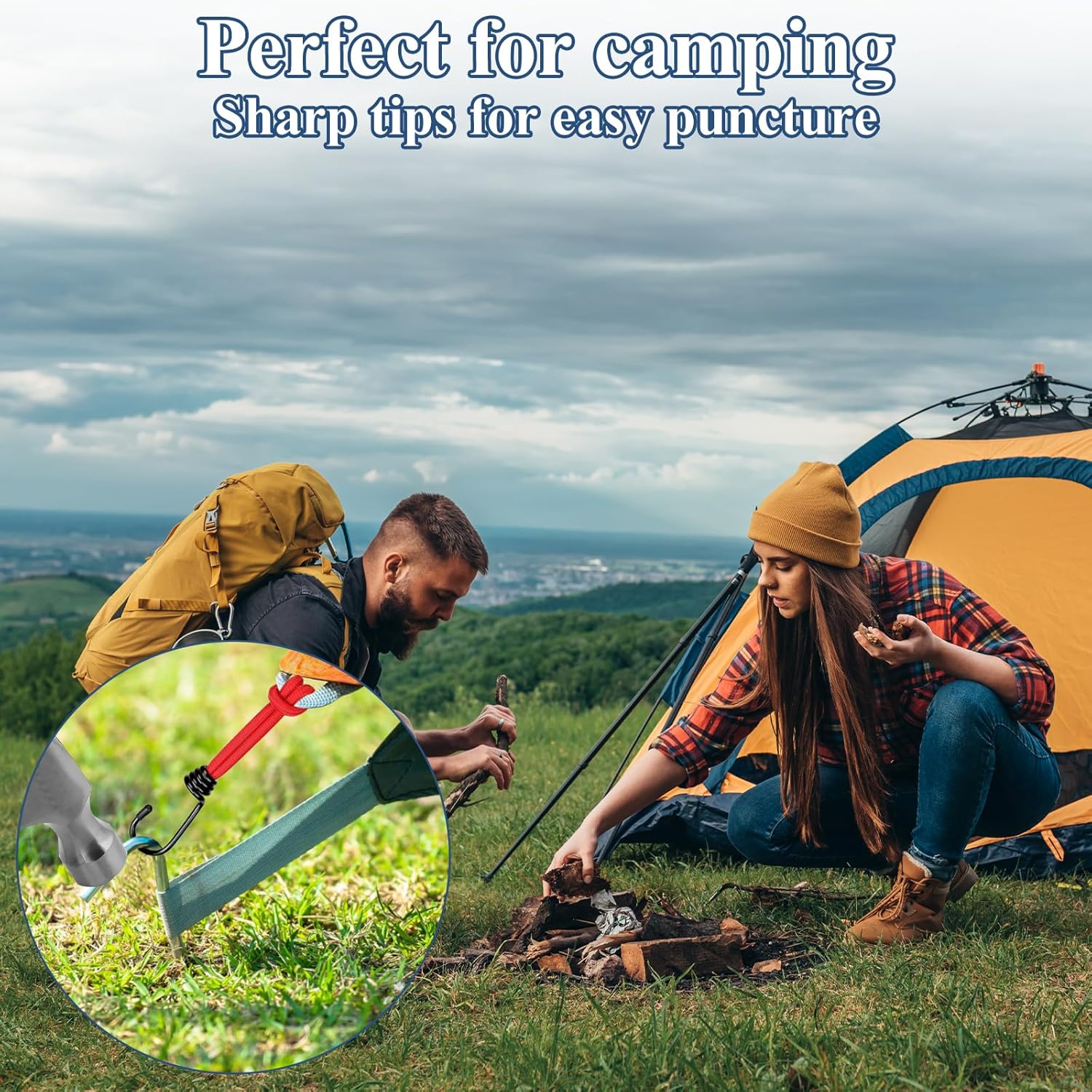• Unique Design: Sharp, slanted tip finish allows tent garden stakes heavy duty to be inserted into the ground with ease, tent pegs come with non-slip hooks to hold them securely in a variety of soil conditions, the hooks prevent the stakes from going too deep into the ground without being detected, providing you with a stable shelter