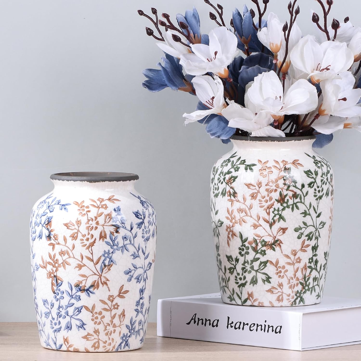 • vases for home decor: Decorate your home with this chinoiserie vase, making decoration simple, the vintage floral pattern gives charm and personality, while complementing a variety of interior styles from traditional to modern farmhouse, adding style to any room in your home.