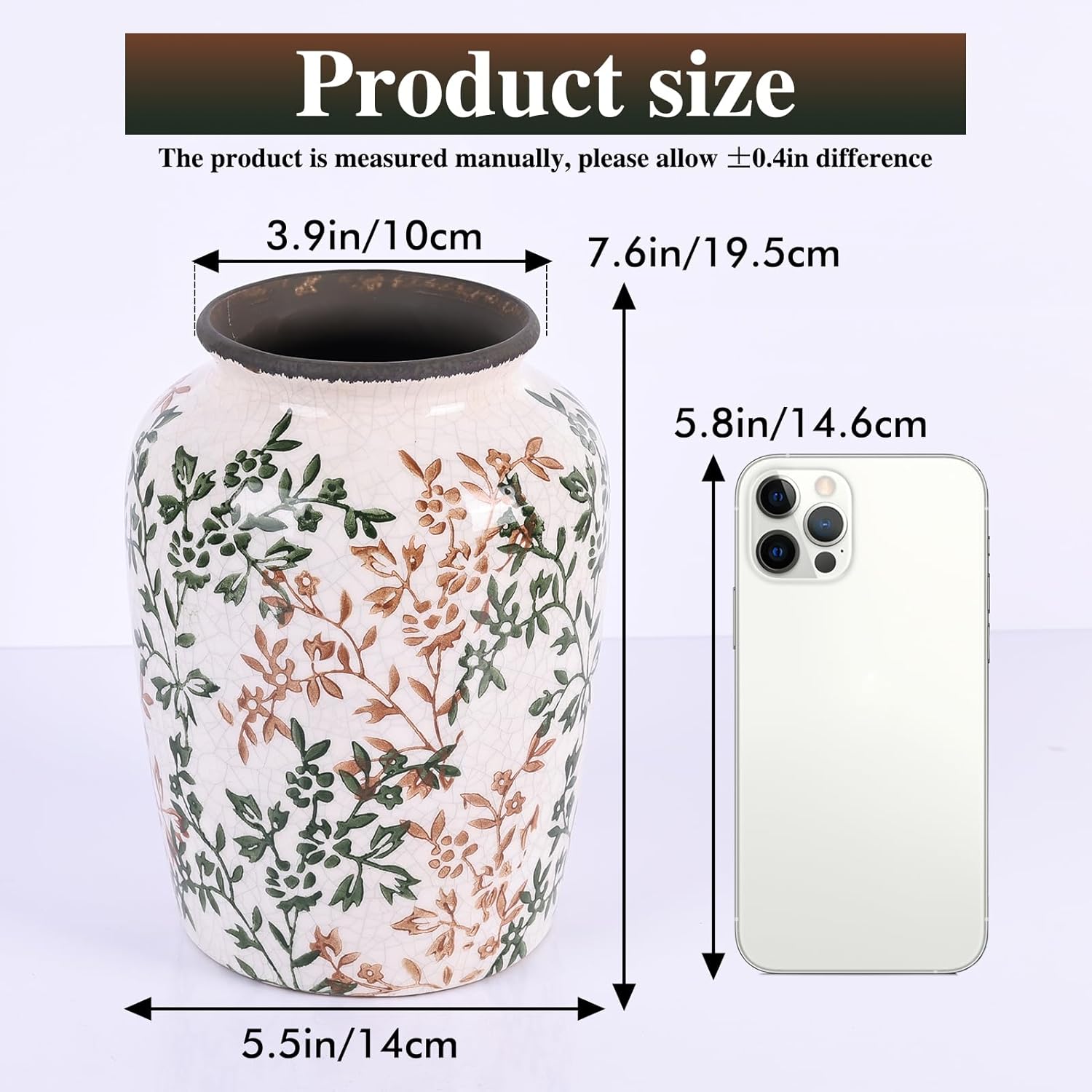 • Rustic flower vase: This porcelain vases measures approximately: 8.3 inches high, 5.5 inches in diameter/21*14 cm, can be used to display fresh or artificial flowers on shelves, mantels, tables or other surfaces, adding charm to living rooms, dining rooms, bedrooms, etc.