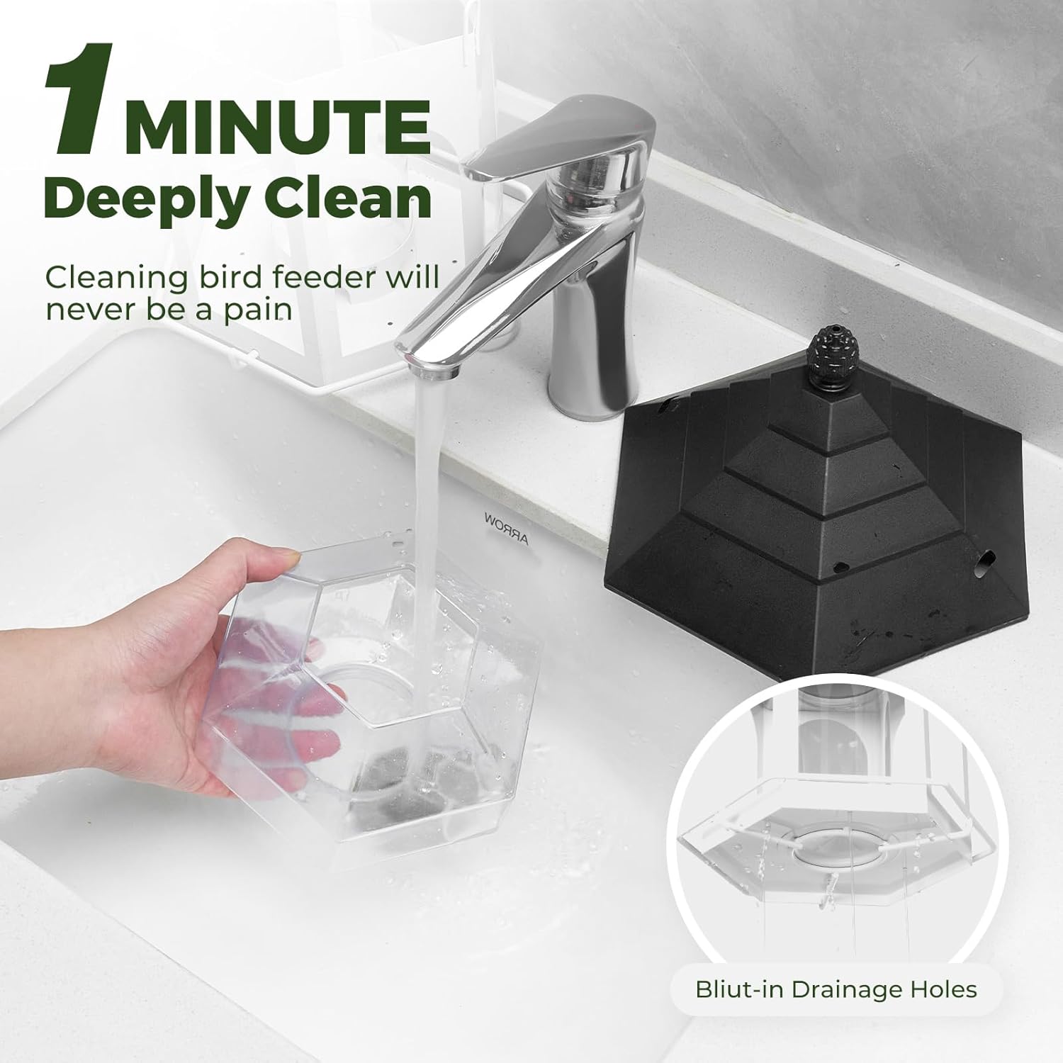 • 【Easy to Refill & Clean】 Easily remove the rainproof roof and wide mouth for quick refilling and cleaning.Transparent seed compartment, easily to see when seeds runs out and replenish in time.