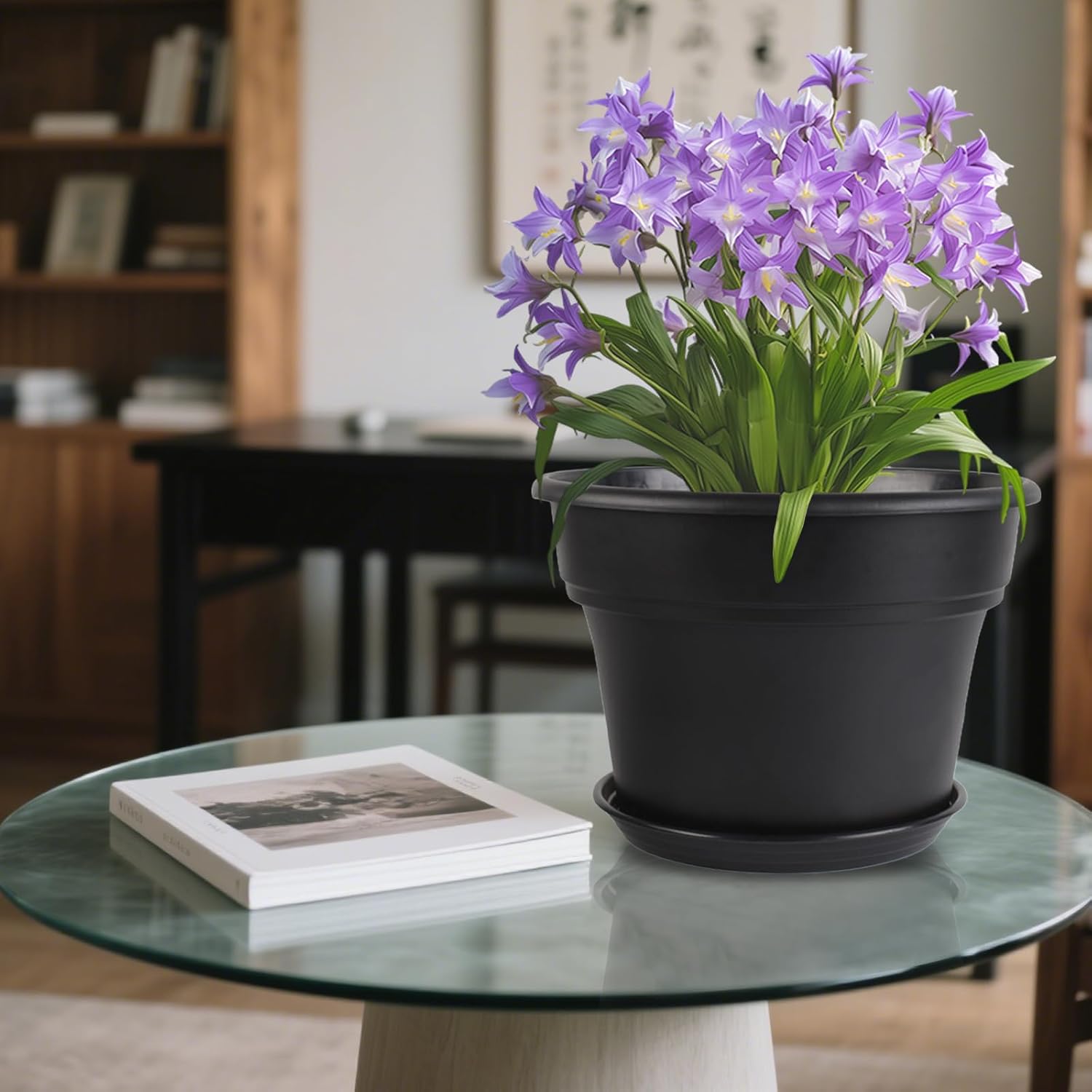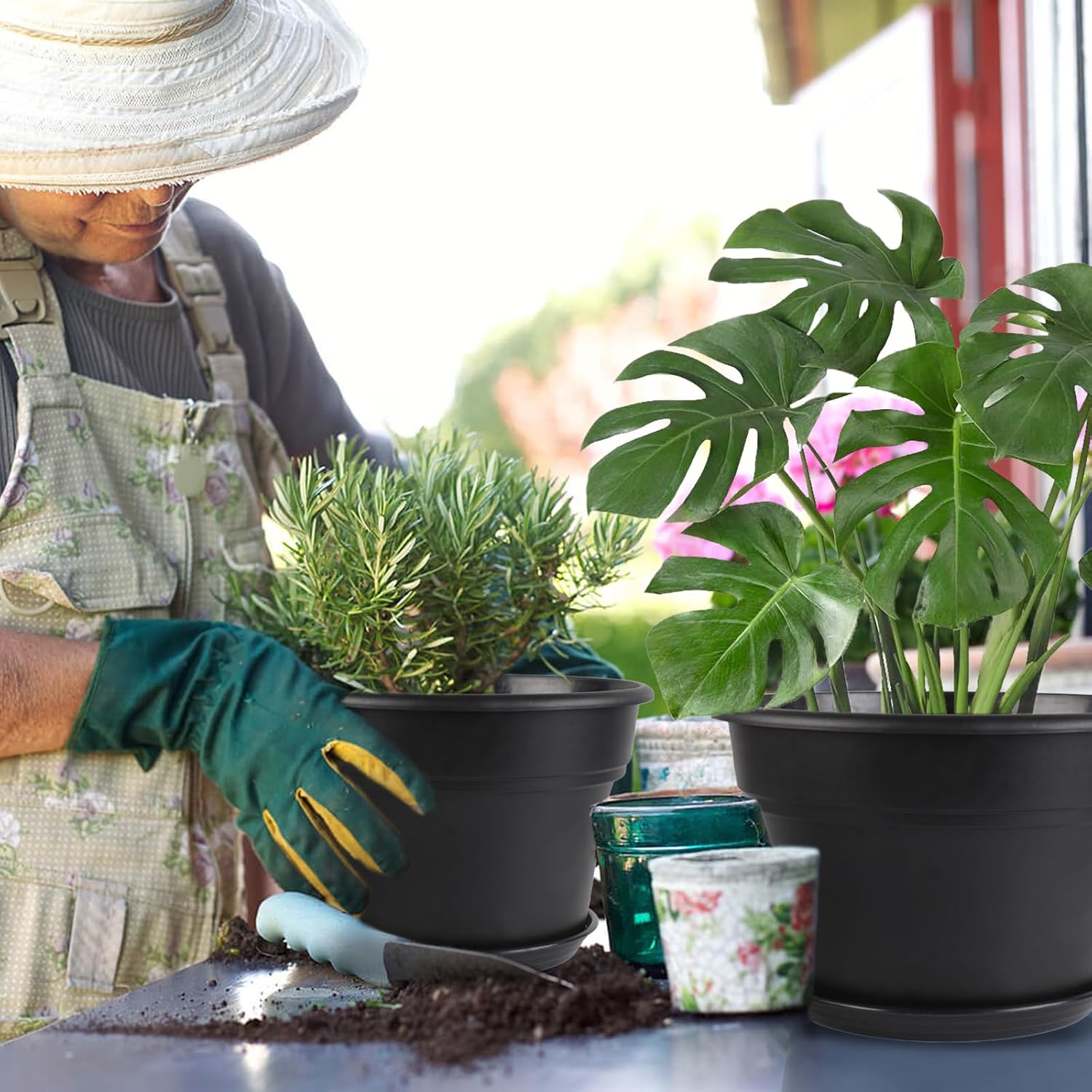 • 【Excellent Drainage and Tray】10 inch Plant Pots are equipped with pre-drilled drainage holes and a removable saucer, these planting pots ensure proper water flow, prevent root rot, and protect surfaces from excess moisture. Saucers capture overflow water for easy cleanup.