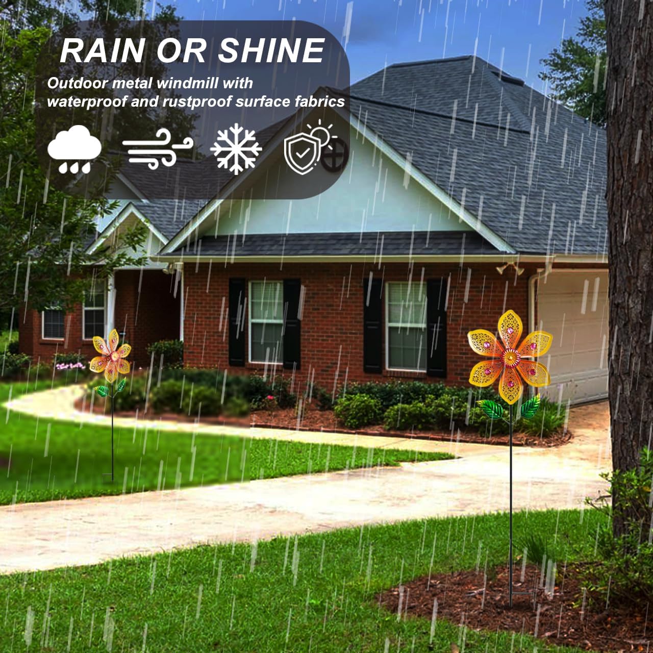 • All-Season Metal Mastery Crafted with ​premium metal construction and rustproof coating, Senflame's 28-inch wind spinners thrive through rain, snow, and UV exposure. The ​8-inch diameter dual-pack designcreates hypnotic motion while maintaining structural integrity—perfect for permanent ​yard windmill displays or dynamic ​garden spinners outdoor. Includes corrosion-resistant stakes for effortless installation in soil, grass, or patio cracks.