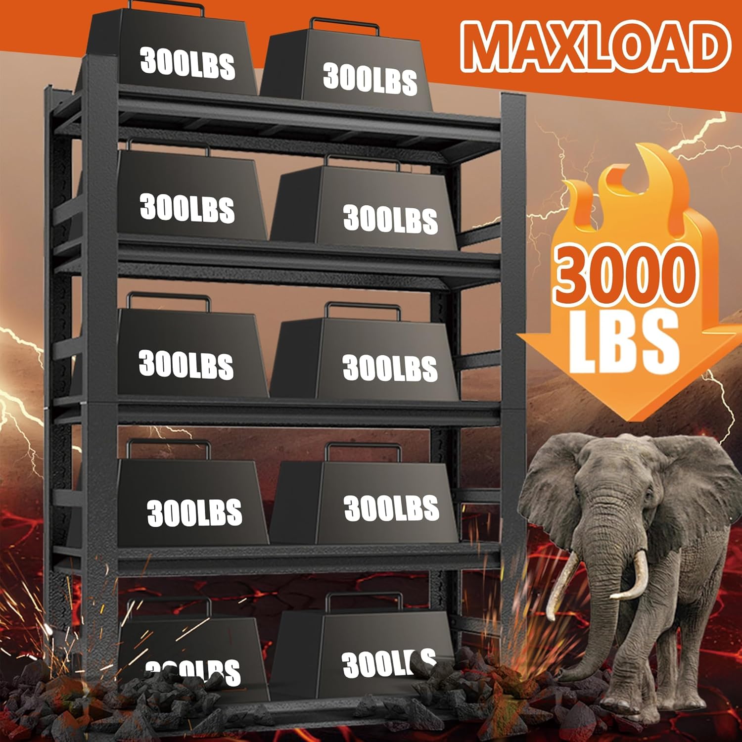 • 【Heavy-Duty 3000lb Garage Shelving】 Our heavy duty garage shelving boasts a 3000lb capacity, reinforced by double-thick steel columns. These industrial shelves provide ultimate durability for garage storage shelves, basement storage shelves, and workshops.