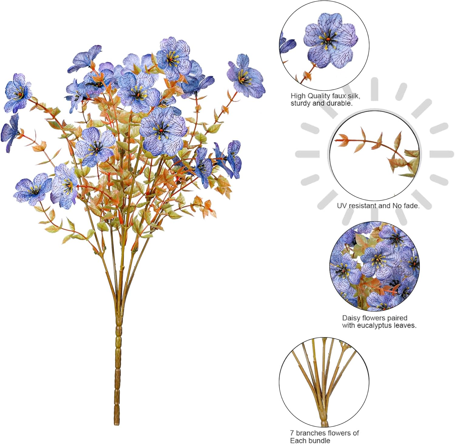 • Daisy Flowers with Eucalyptus Leaves: Elevate your home's ambiance with these 12 bundles of daisy flowers, colorful flowers with green leaves, infuse natural beauty into your living spaces.