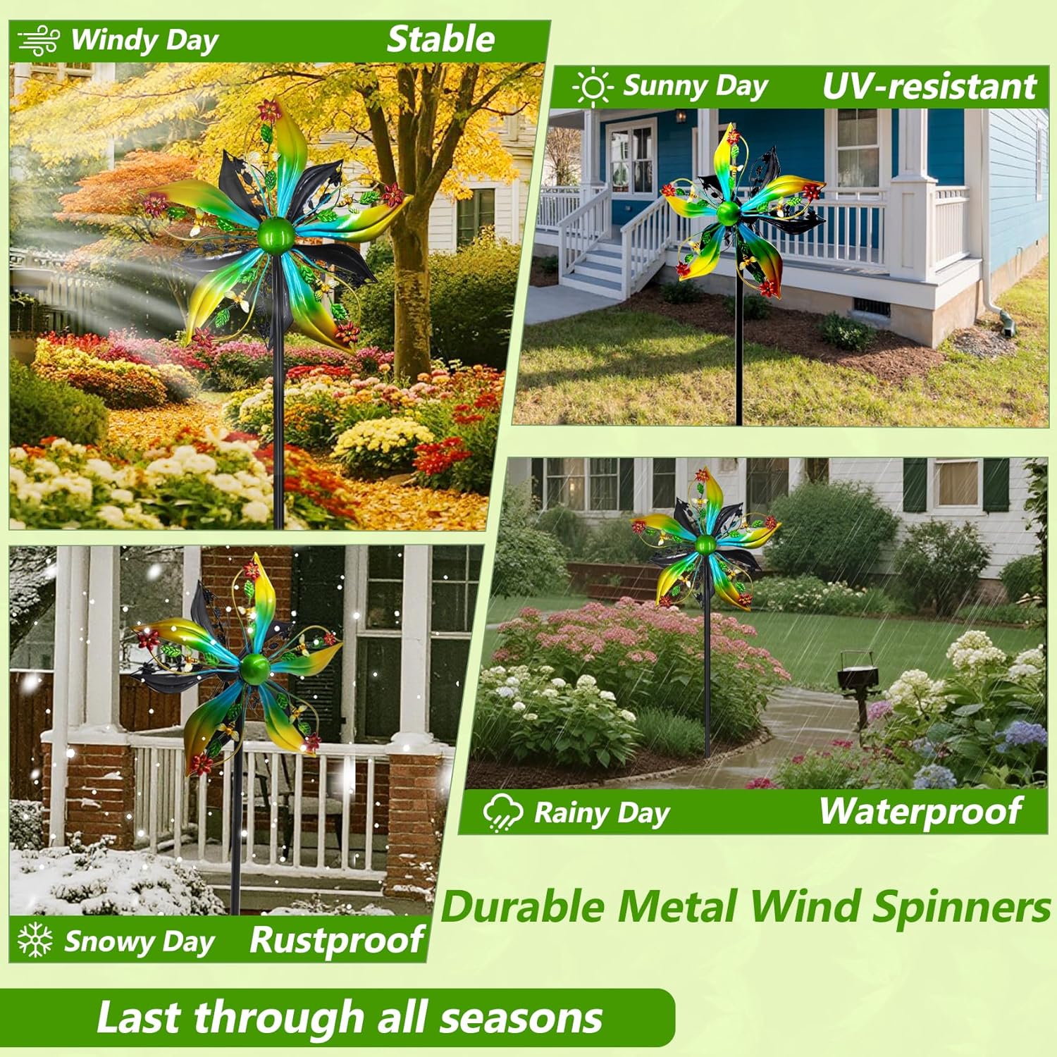 • Durable Metal Wind Spinners: Crafted from durable metal with waterproof, rustproof, and UV-resistant coating, this garden wind spinner is built to last through all seasons