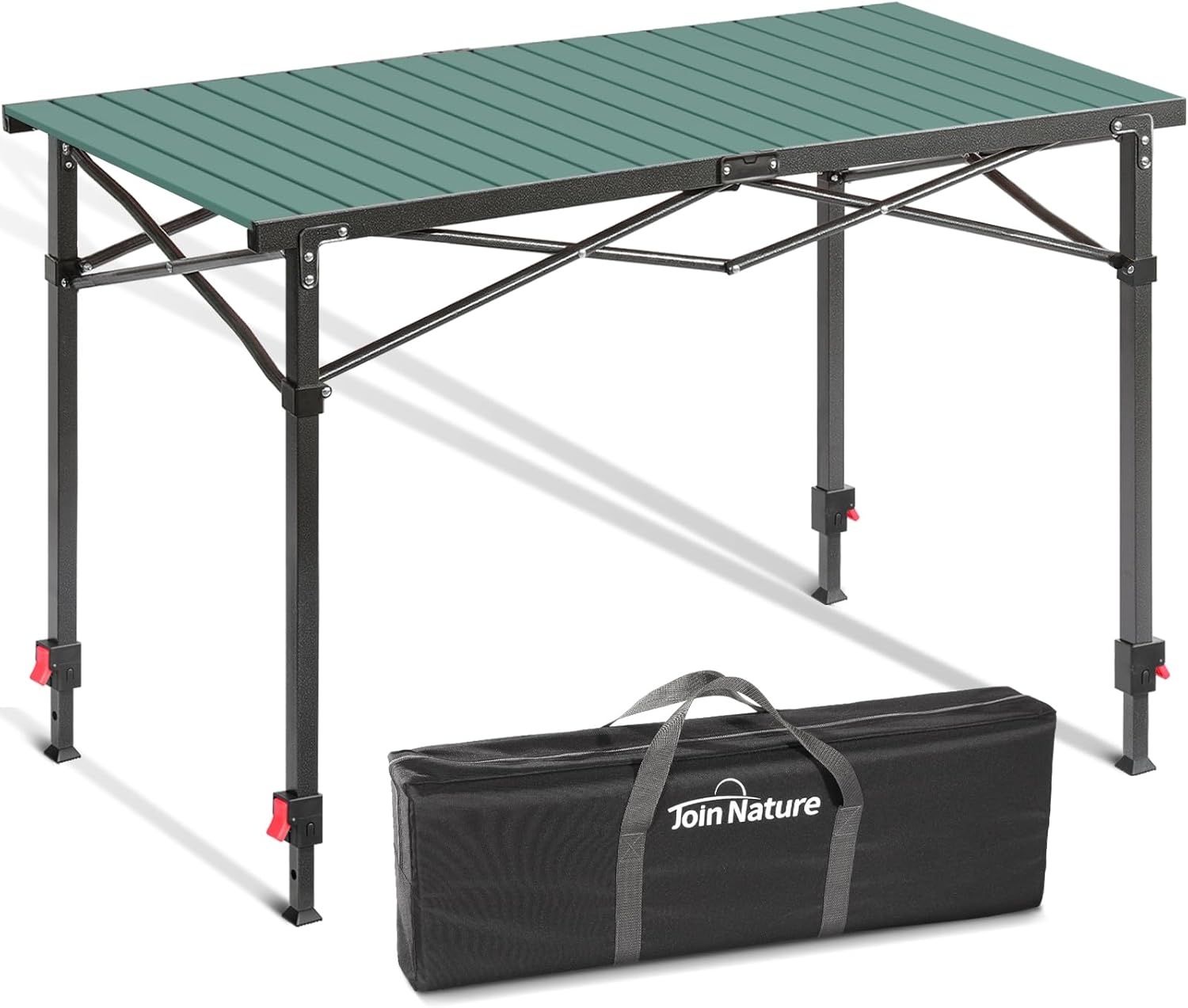 • Extremely Durable: The Join Nature adjustable camp table features a frame made of high-strength painted steel tubes combined with cross-shaped support tubes, and the tabletop is constructed from heavy-duty aluminum sheets. The high-quality materials and construction make our camping table exceptionally strong and durable, with a load-bearing capacity of up to 220 pounds—at least 30% higher than standard tables.