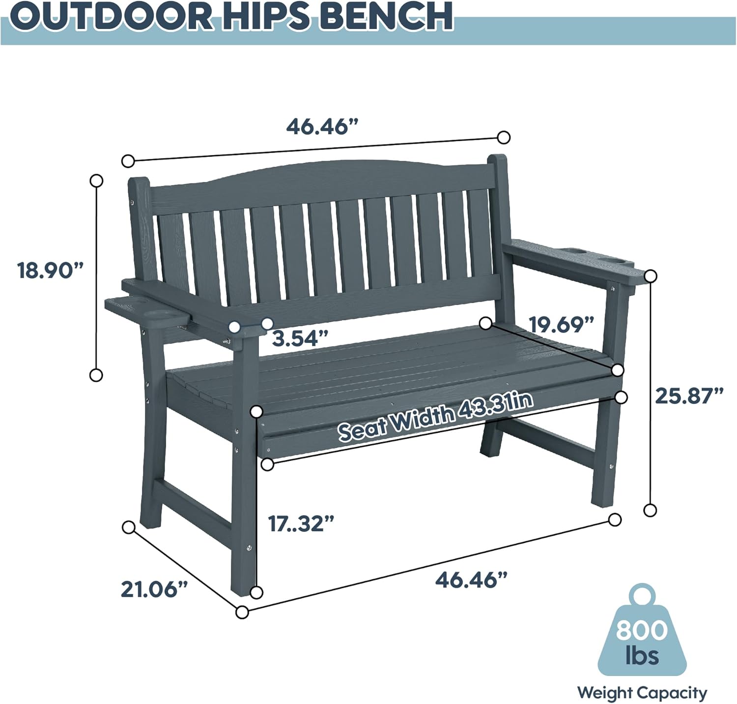 • 【All-Weather Outdoor Bench】Our outdoor bench is made of HIPS poly material, which has high weatherproof and UV resistance and will not fade in all kinds of weather, including scorching sun, rain, heavy snow.
