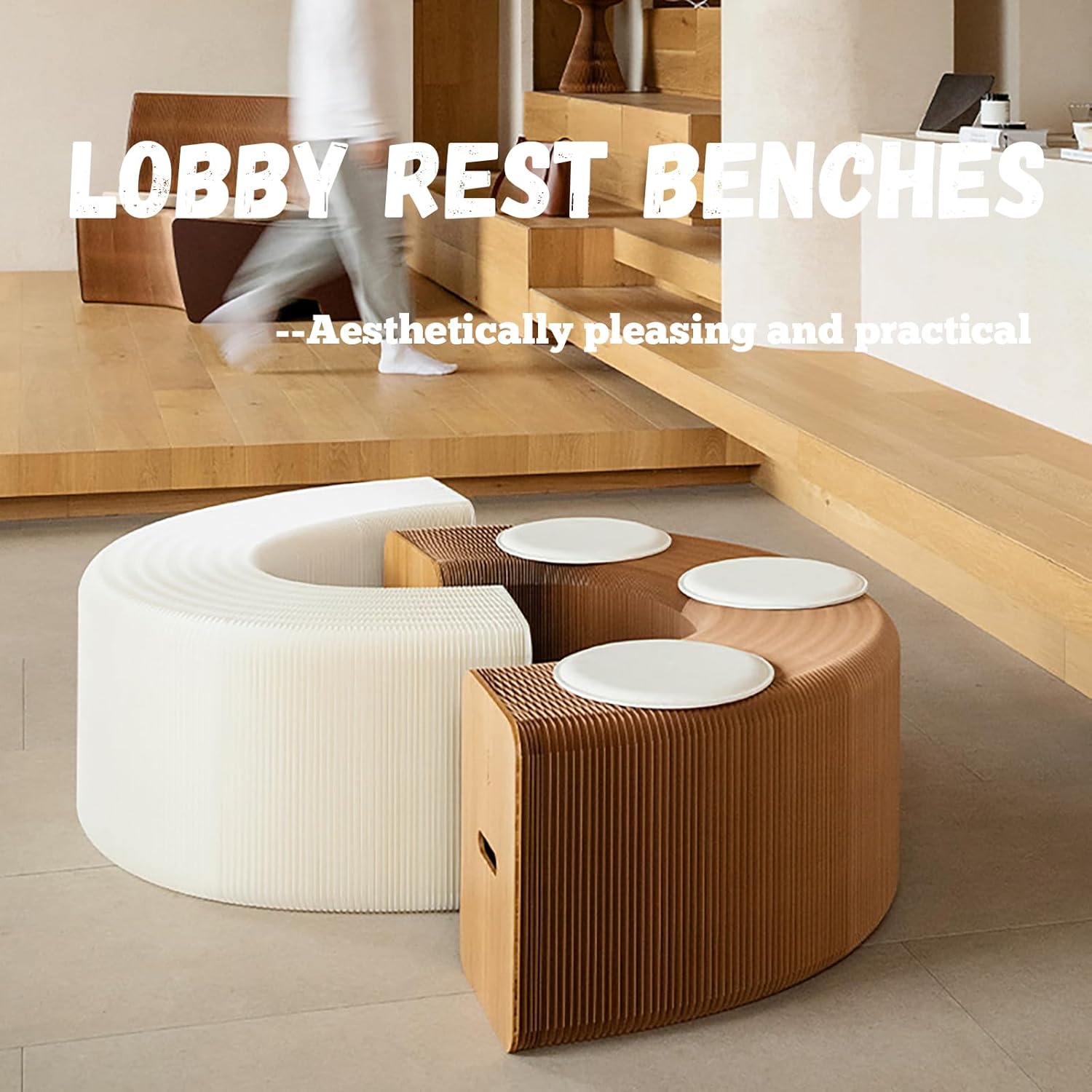 Foldable Kraft Paper Stool, Honeycomb Accordion Folding Bench, Collapsible Paper Stool for Small Spaces, Portable Footrest and Side Table for Living Room and Office,Brown-44×31×150cm