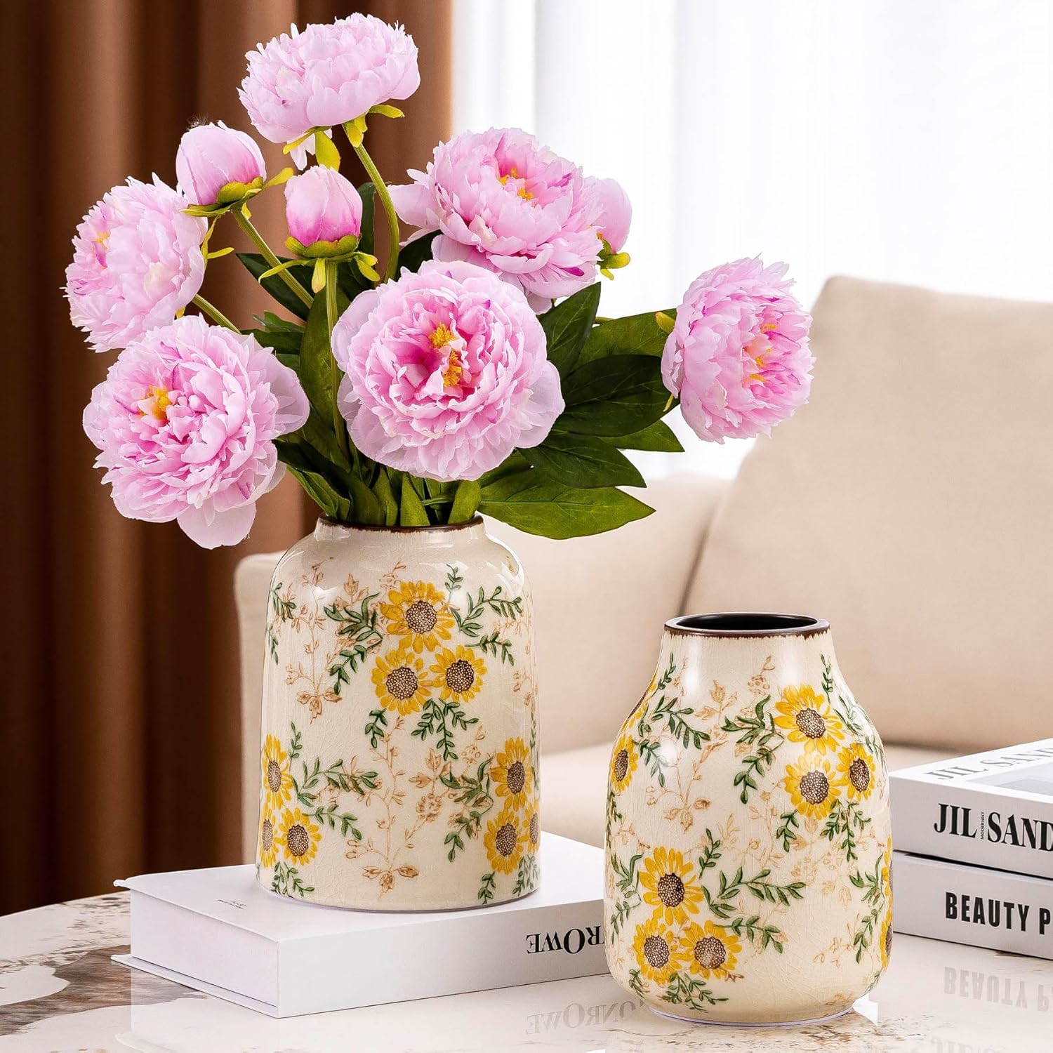 • Multi-Scenario Decorative Accent: From Tuscan-inspired kitchens to grand millennial living rooms, this sunflower vase doubles as standalone art or a vibrant floral holder. Use it for fireplace decor, table settings, entryway accents, or as part of sunflower-themed chinoiserie arrangements. Its cheerful yellow and green palette brightens any corner year-round.