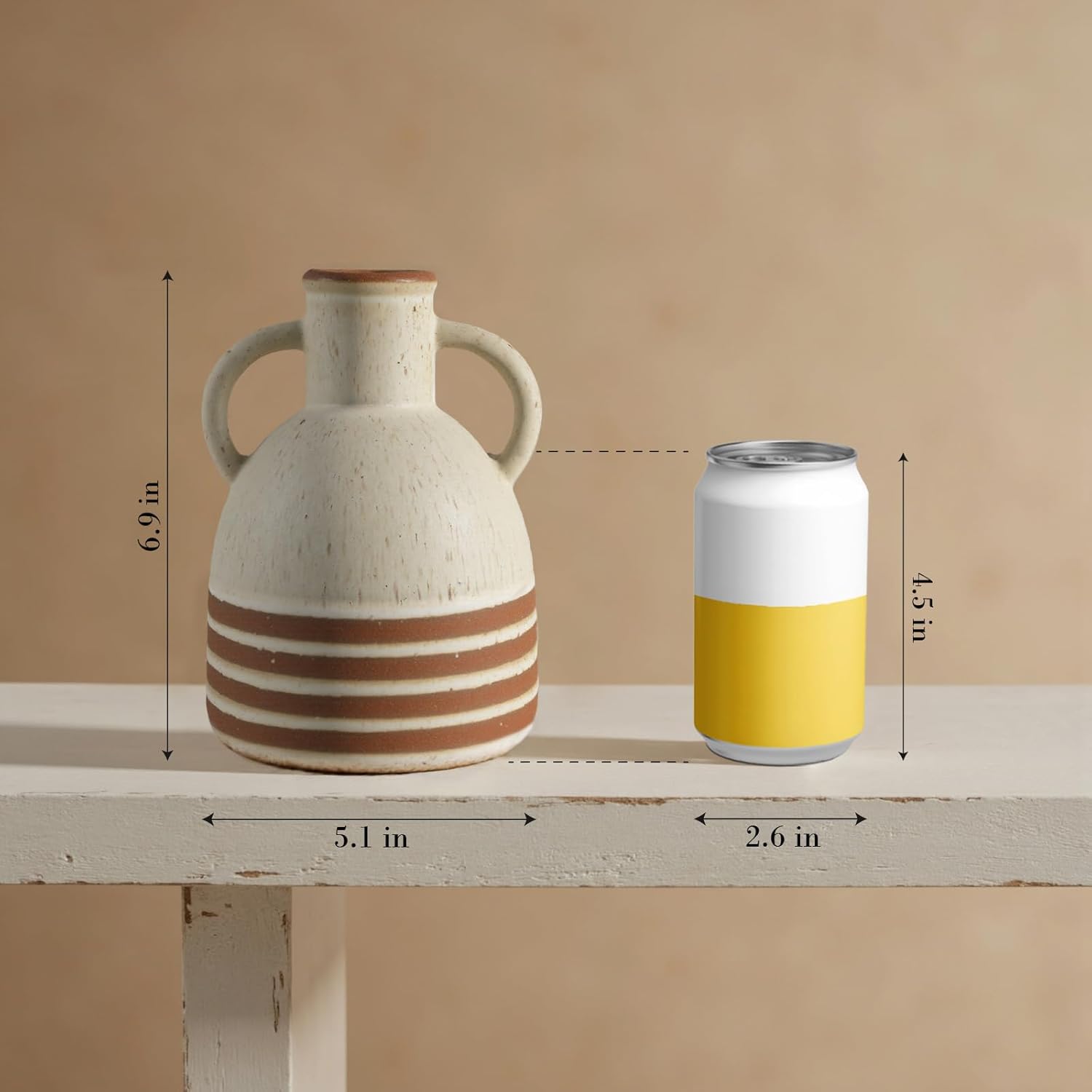 Rustic Farmhouse Ceramic Vase, Pastoral with 2 Ear Design, Boho Vintage Terracotta Vases for Bouquet、Fake Plants, Suitable for Home Decor, Shelf, Dining Table, Living Room, Mantle, Bathroom, 6.9 Inch