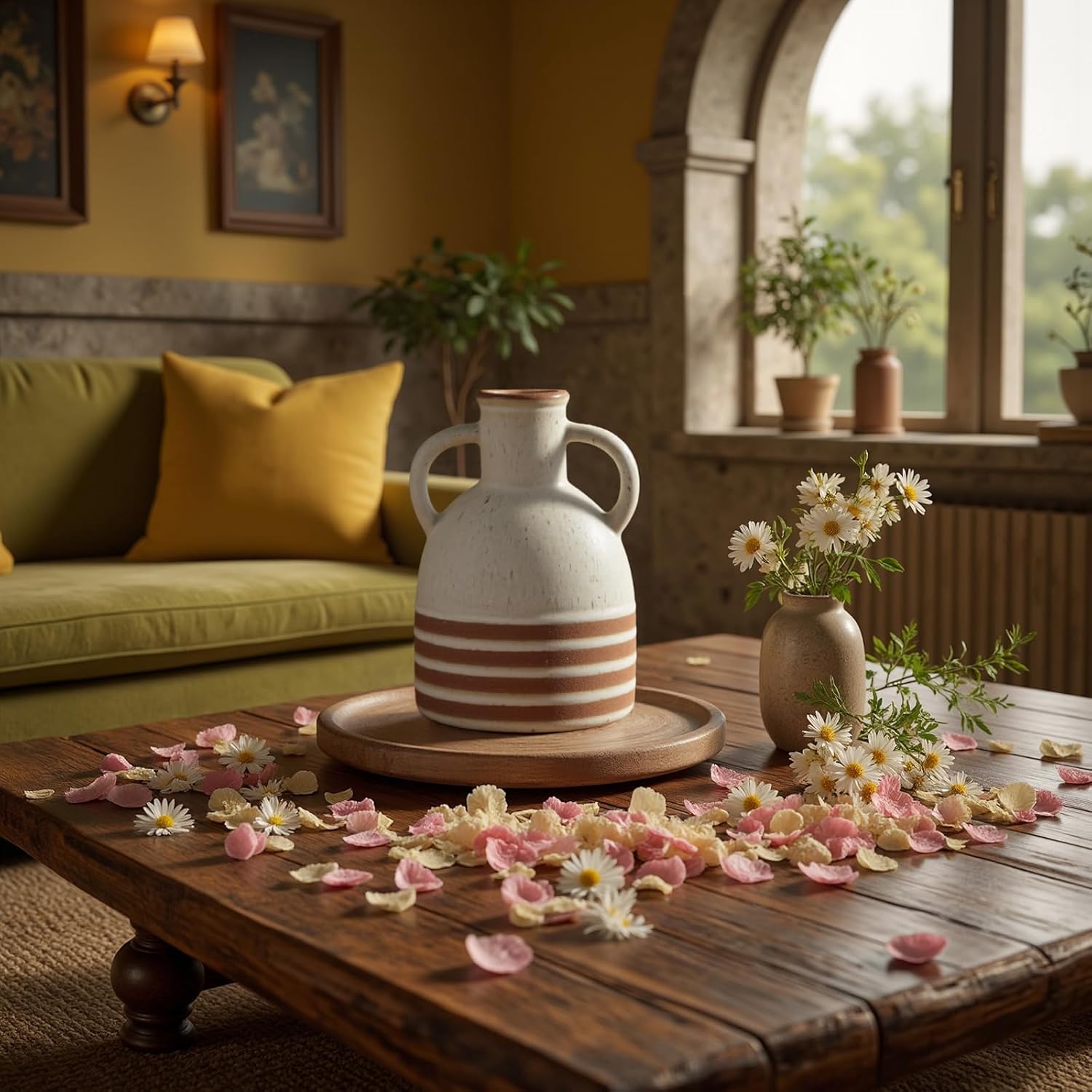 • 【CRAFTED FROM PREMIUM QUALITY CERAMIC】 You will be amazed by the craftsmanship of this farmhouse rustic vases for home decor, which are handcrafted by skilled artisans and fired at temperatures up to 1300 degrees to ensure long-lasting durability. This chic vase will complement your home decor, and its scratch-resistant base will ensure your furniture will remain beautiful for years to come.