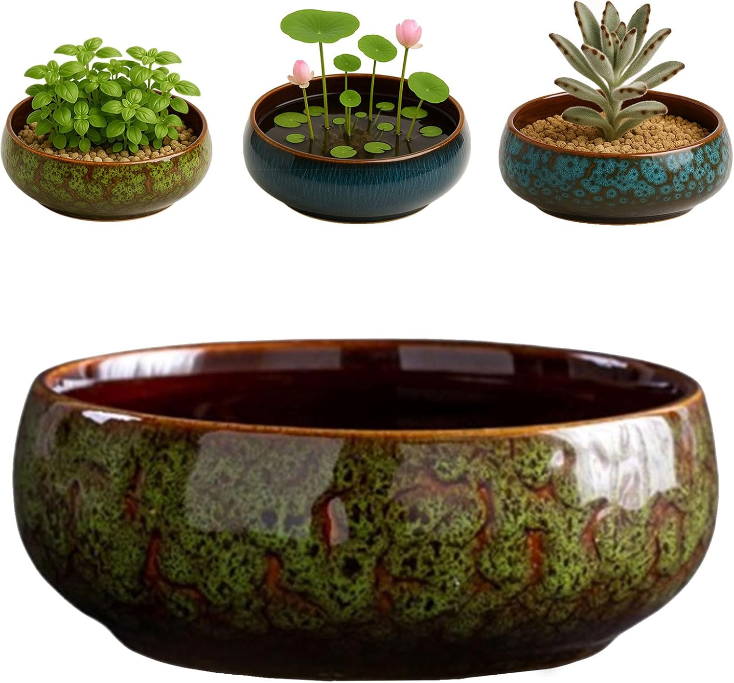 • PERFECT FOR INDOOR AND OUTDOOR GARDEN DECOR: A stylish addition to your patio, living room, or office. This glazed water garden bowl suits minimalist, oriental, or vintage plant decor themes and works great as a ceramic succulent container