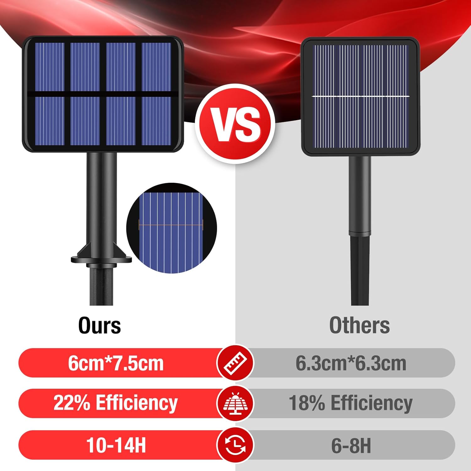 • Waterproof Design for All Weather: Light string and solar panel are IP65 waterproof to withstand any weather, either rain, sun, or snow. Safe for outdoor use, Don't worry about short circuits or bad weather damage (can't soak in water). Emit a red light after rain, romantic and beautify the yard