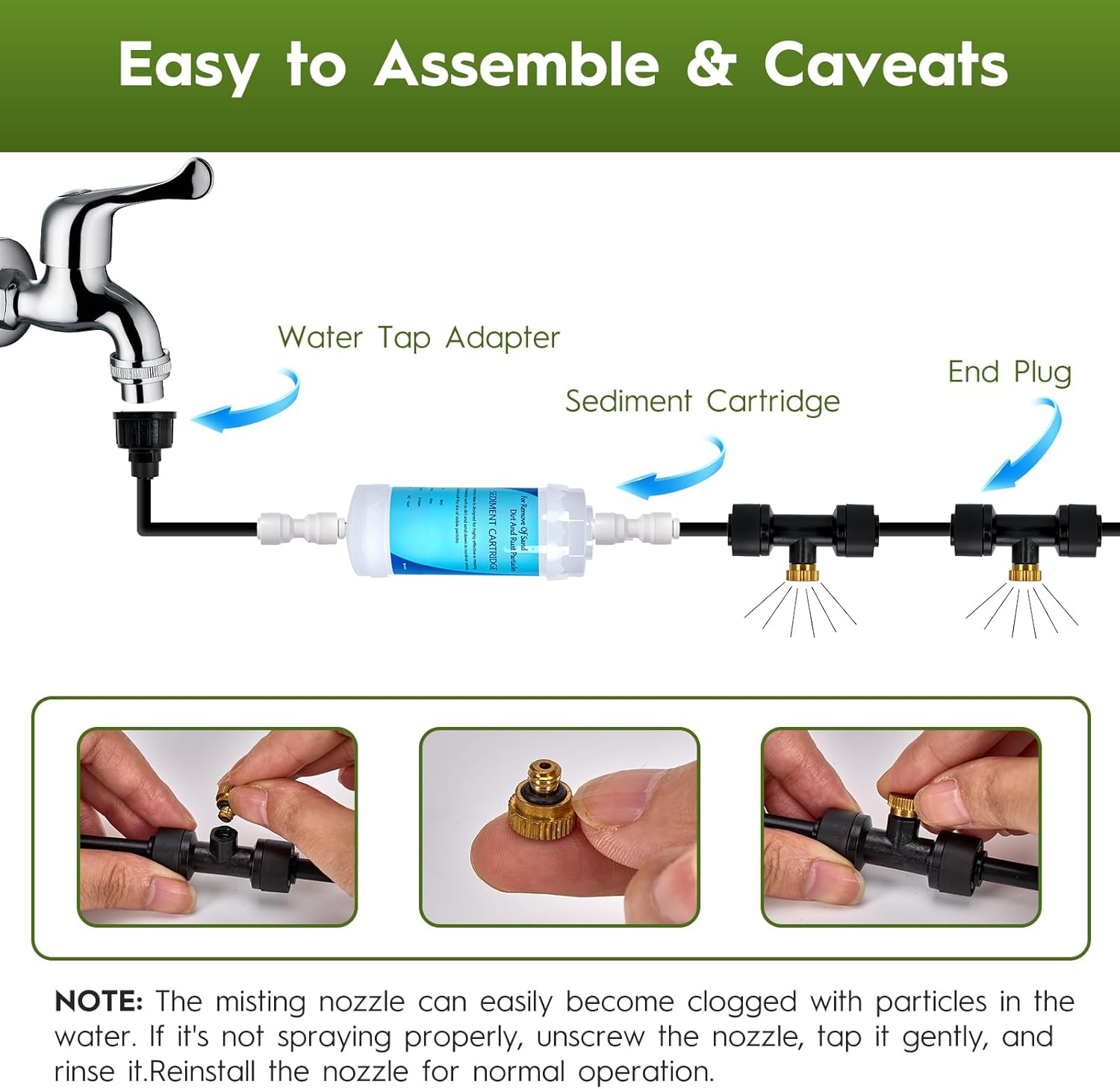 • Advanced Filtration & Clog-Free Design - Every kit includes a built-in filter to remove impurities, reducing nozzle blockage by 80% and extending system lifespan. Breathe easy knowing your misters stay clear, whether cooling kids on a trampoline or nurturing delicate herbs