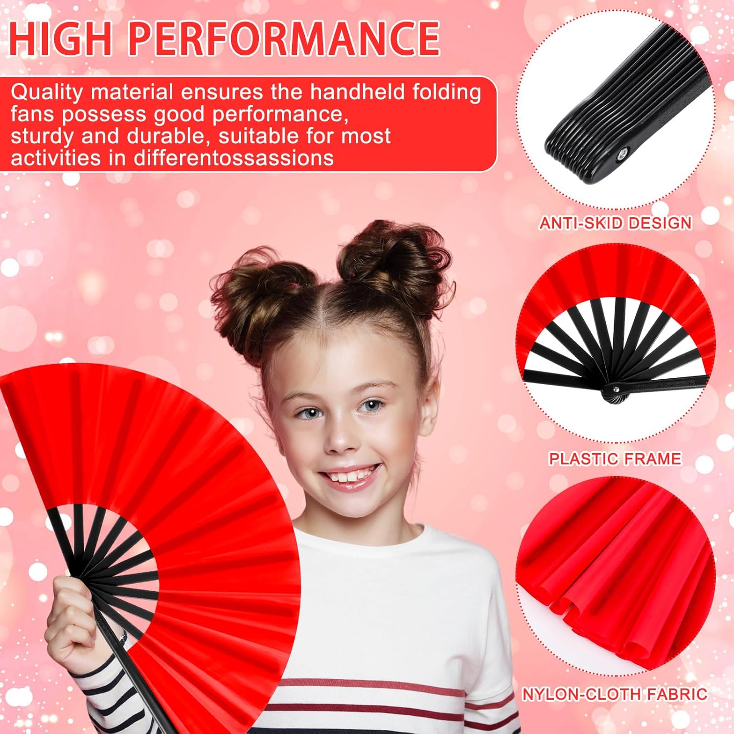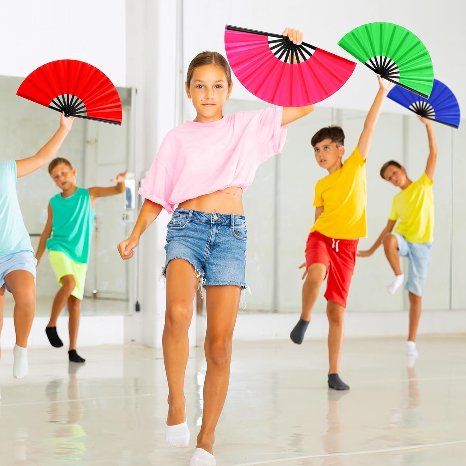 Blulu 4 Pcs 11 Inch Large Folding Hand Fans for Line Dancing Clapping Popping Rave Fans for Kids Women Men for Dancing Boots on The Ground Festival Party Decoration(Classic Style, Chic Color)