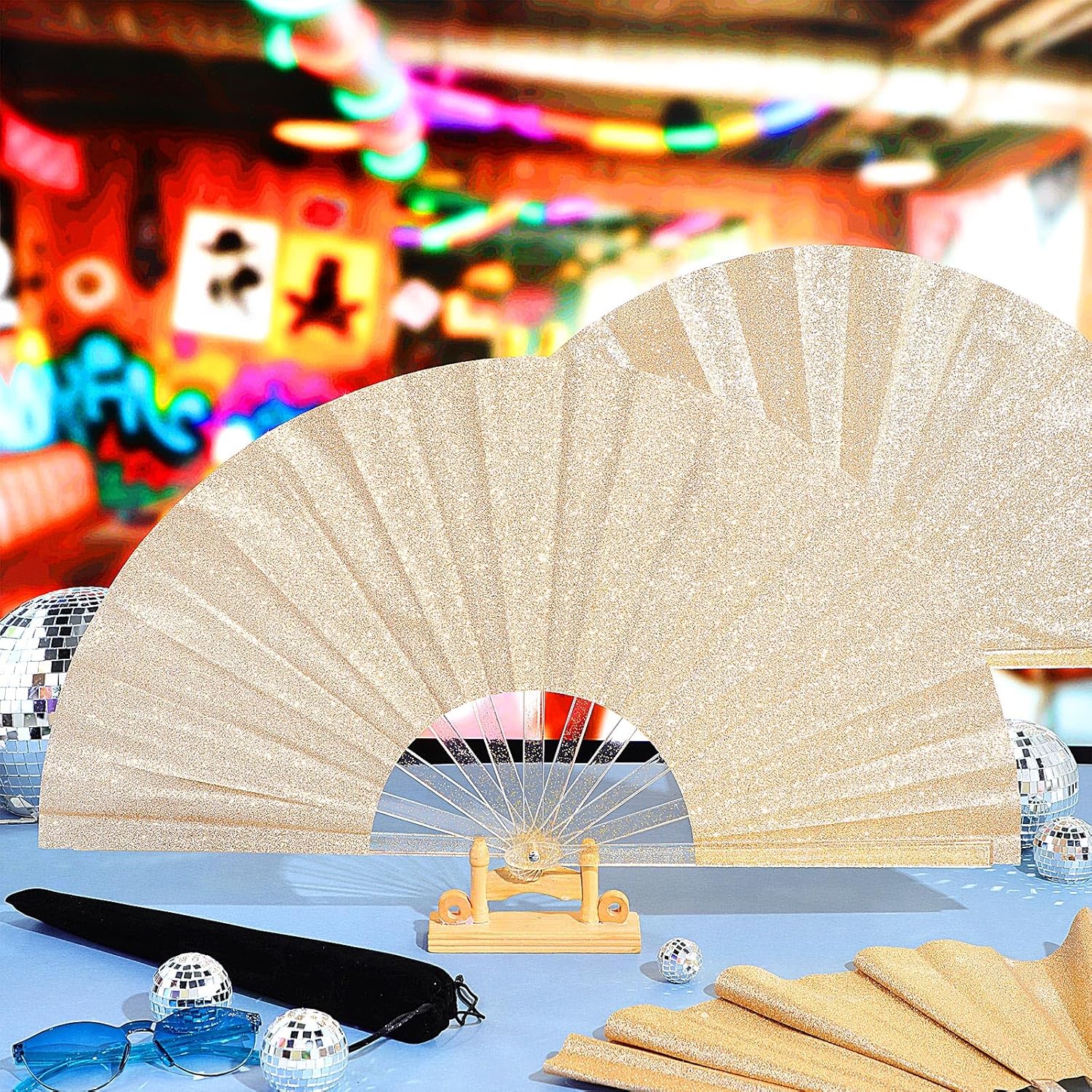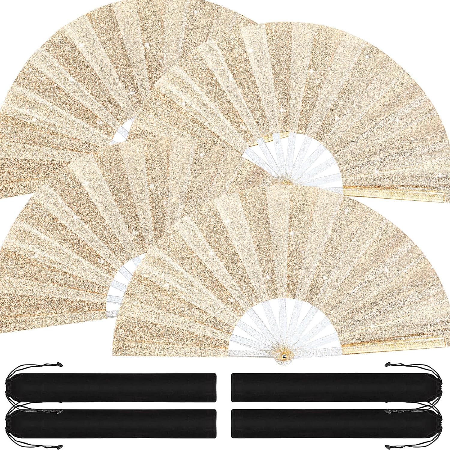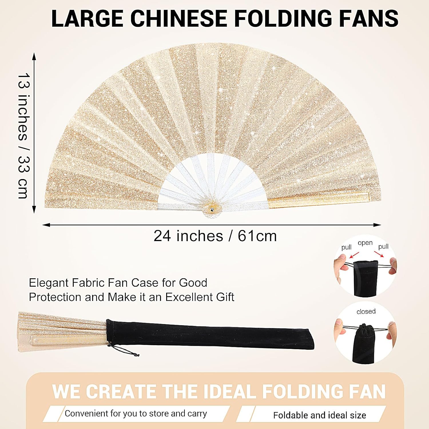 Blulu 4 Pcs 13 Inch Large Folding Hand Fans for Line Dancing Big Clapping Popping Raves Fans Bulk for Dancing Boots on The Ground Festival Party Decoration(Classic Style, Gold)