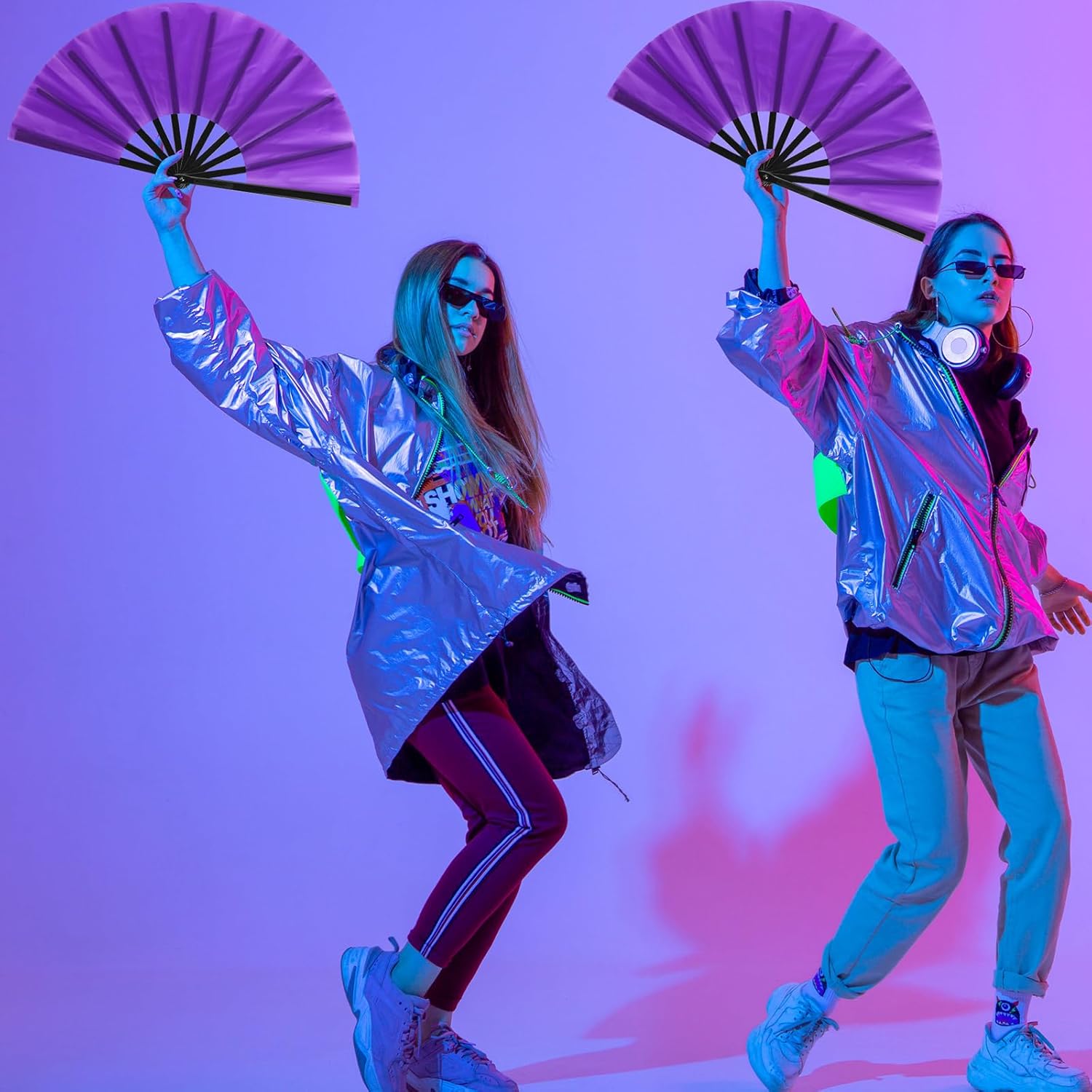 Blulu 4 Pcs 13 Inch Large Folding Hand Fans for Line Dancing Big Clapping Popping Raves Fans Bulk for Dancing Boots on The Ground Festival Party Decoration(Classic Style, Purple)