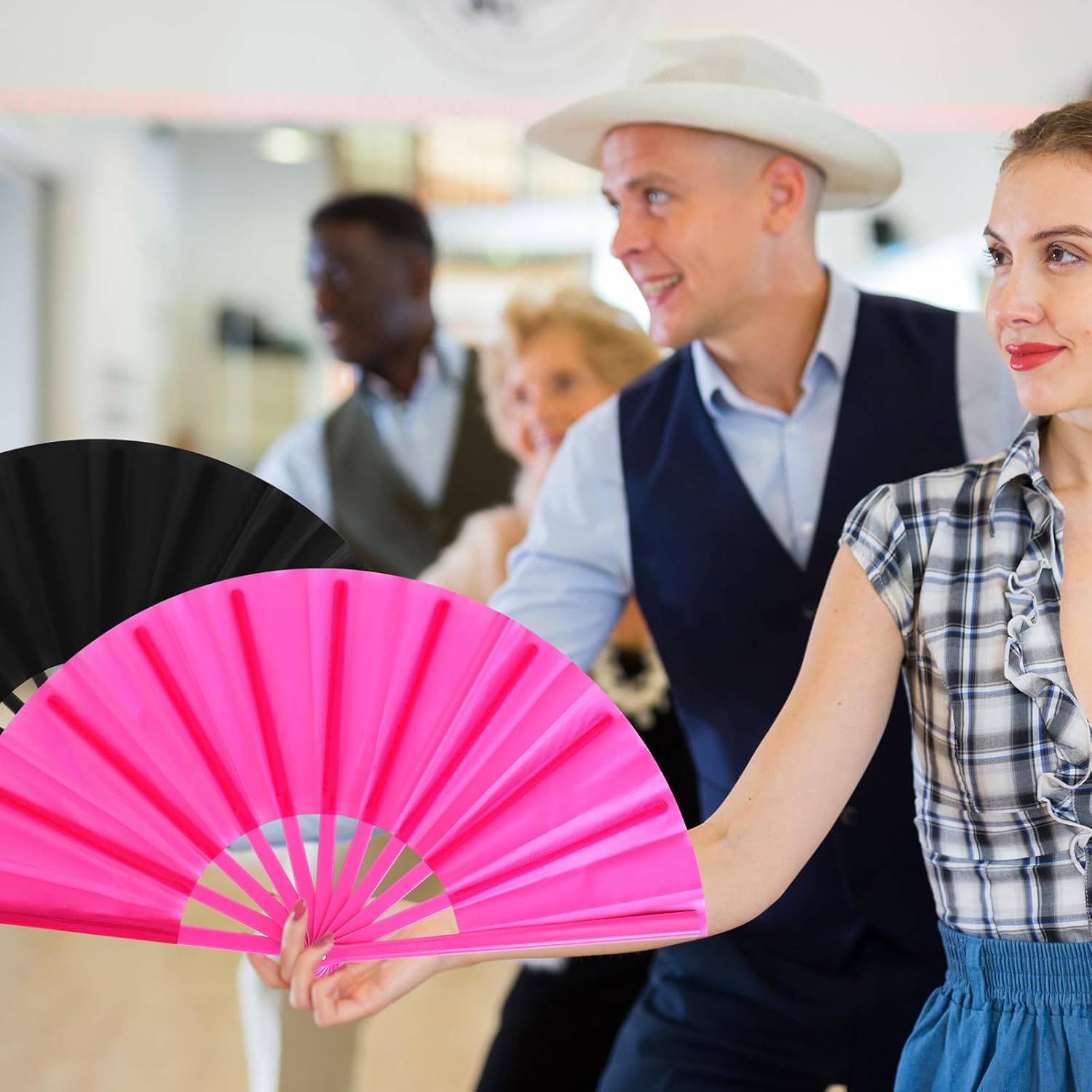 Blulu 4 Pcs 13 Inch Large Folding Hand Fans for Line Dancing Big Clapping Popping Raves Fans Bulk for Dancing Boots on The Ground Festival Party Decoration(Classic Style, Black, Purple, Pink, Blue)