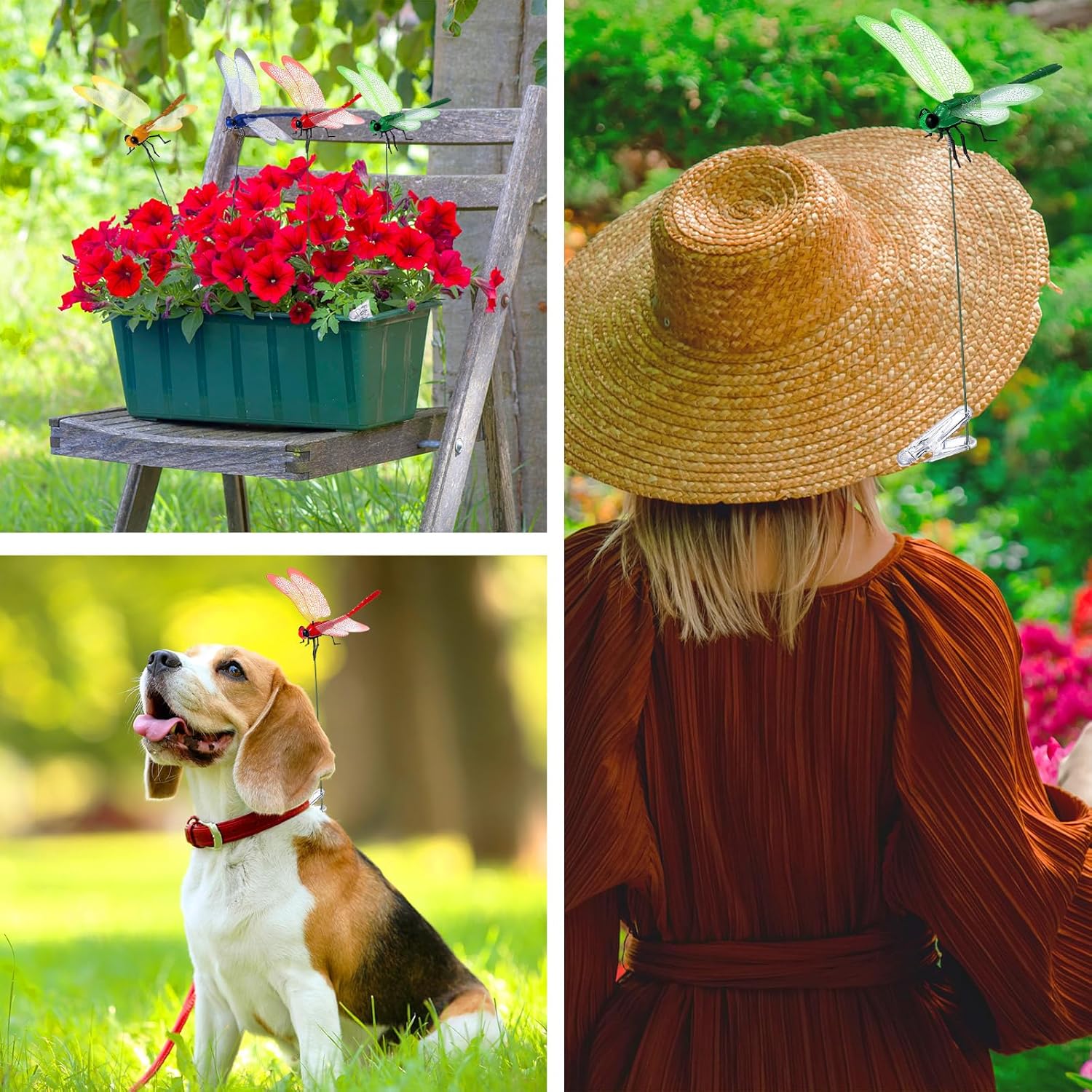 • Vibrant Garden Accents: transform gardens, courtyards, patios, and flower beds with these lifelike 3D dragonfly hat clips; They add vitality and charm to plants and flowers, enhancing your decor with ease