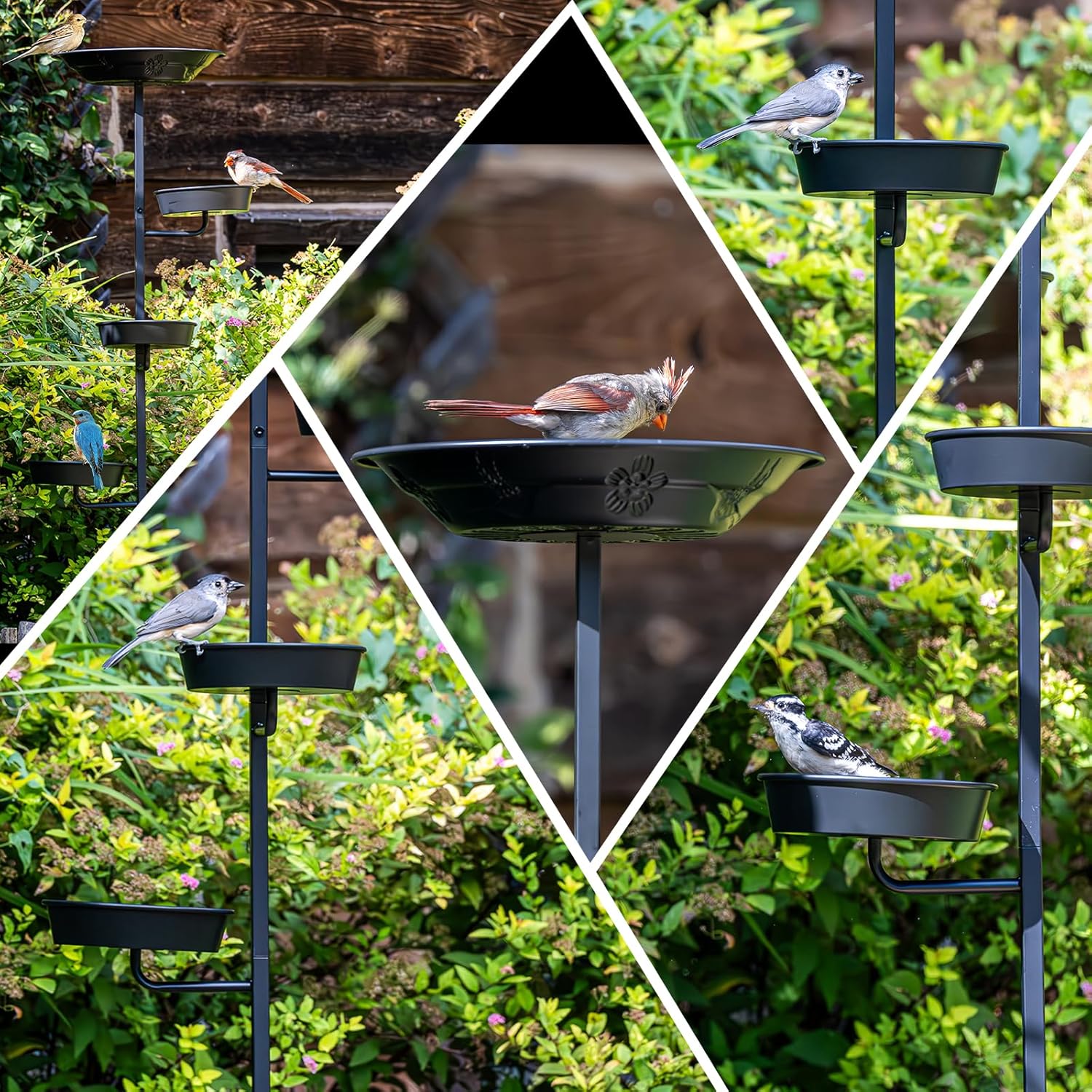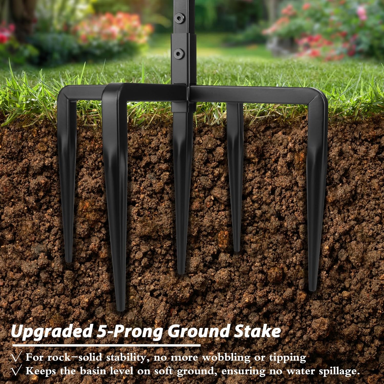 • Sturdy 5-Pronged Base: The bird bath for outside features an all-metal construction with a 5-prong base to prevent tipping and ensure stability in the soil. The black coated surface is rust-resistant and can withstand all weather conditions