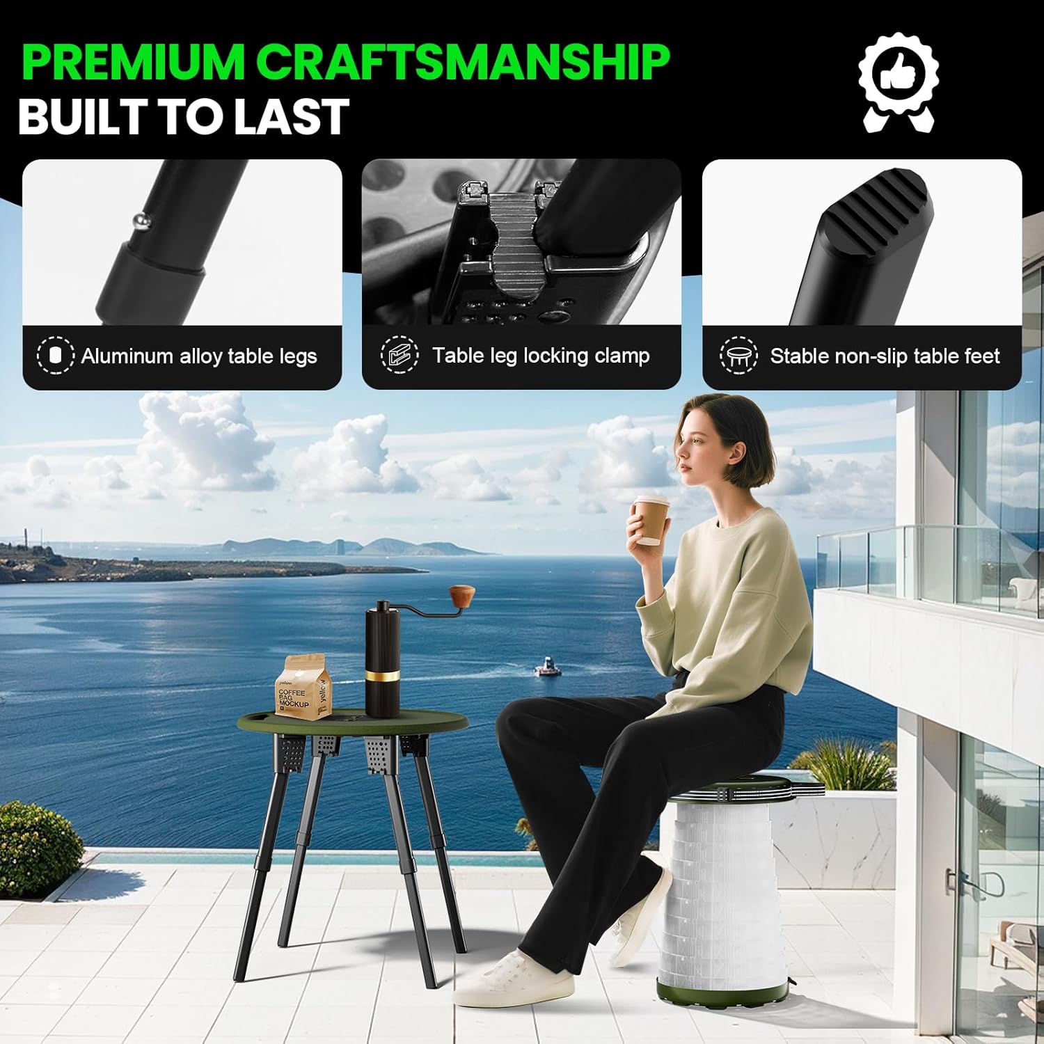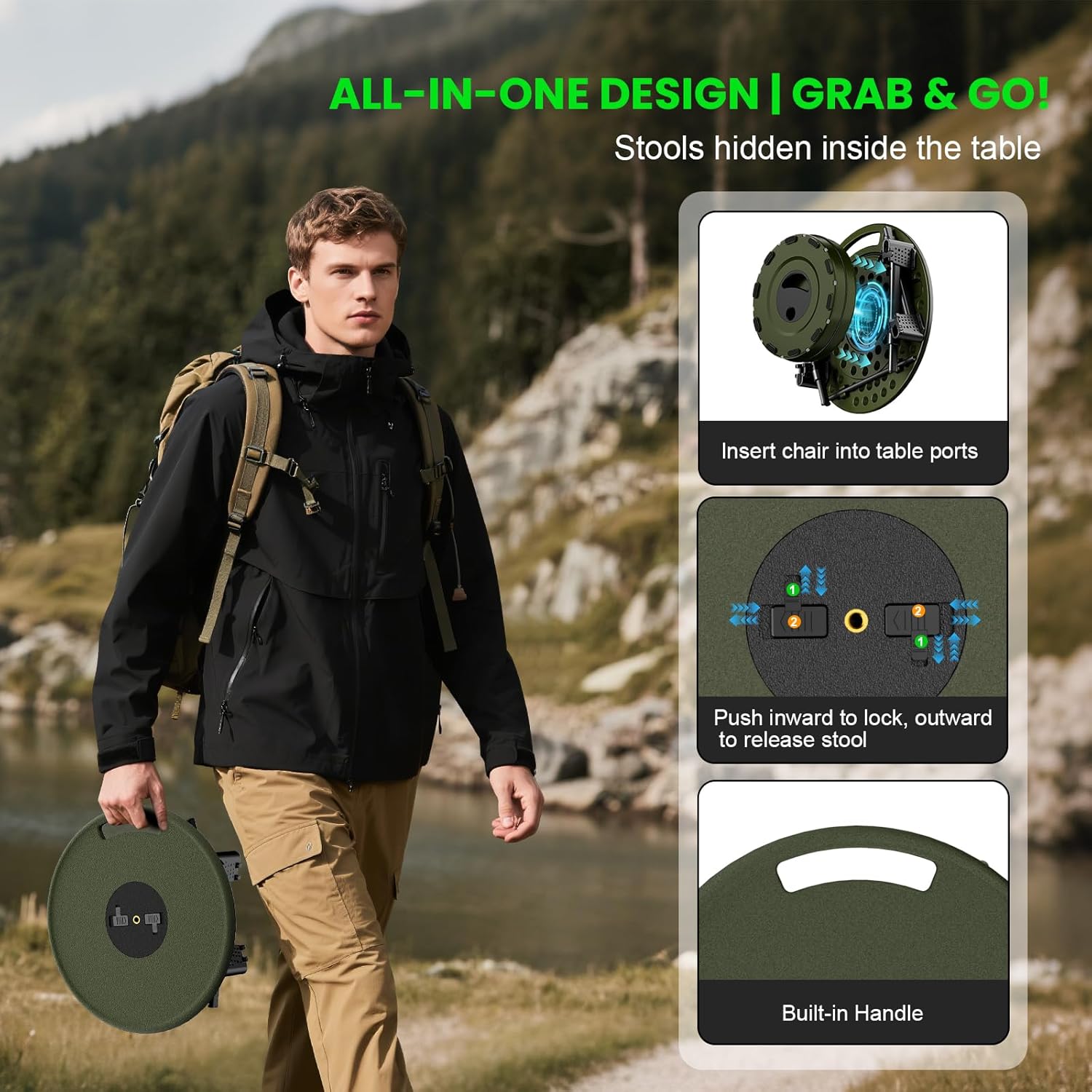 • 【Ultra-Portable & Compact】 The all-in-one set includes a foldable table and a retractable stools that store completely inside the table for ultra-compact transportation.