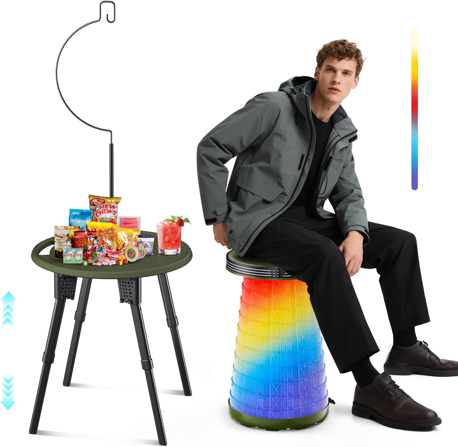 LED Camping Table Set with Stools, 300lbs Capacity Adjustable Height Folding Table & Chairs, All-in-One Compact Design for Outdoor, Camping, Picnic, Tailgating