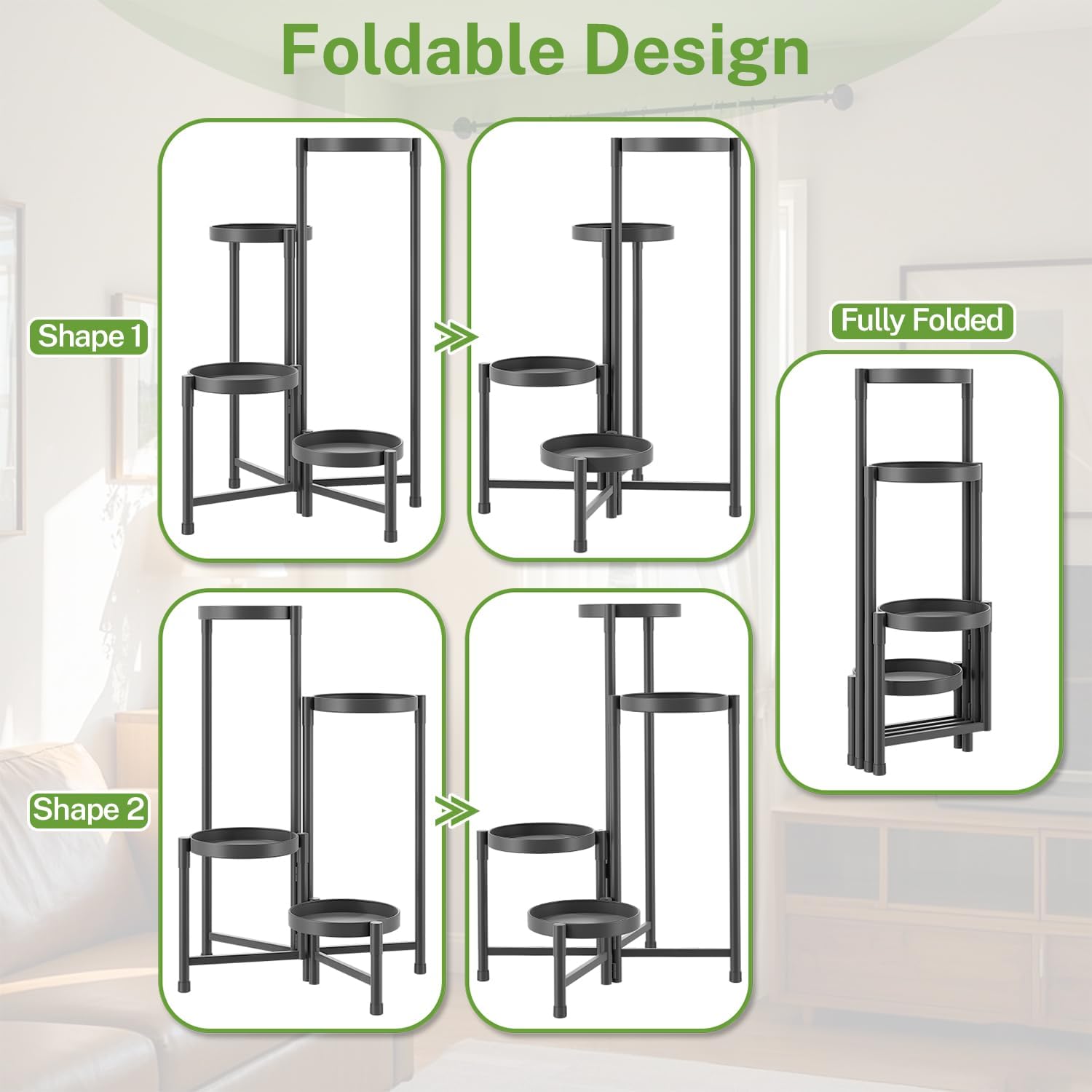 • Space-Saving Adjustable Design: The plant stand outdoor has the fixed center pole while outer legs rotate smoothly, letting you shape it to fit corners or straight spaces. It provides a flexible display that adapts easily and folds for convenient storage