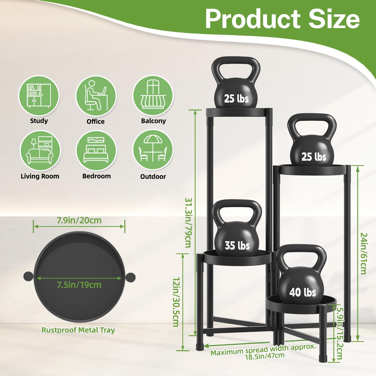 • 7.9-Inch Wide Trays with Rim: This tall plant stand features 7.9-inch round trays, suitable for pots up to 7.5 inches wide. Each tray is designed with raised edges that guard against spills and tipping, keeping your plants safe and steady