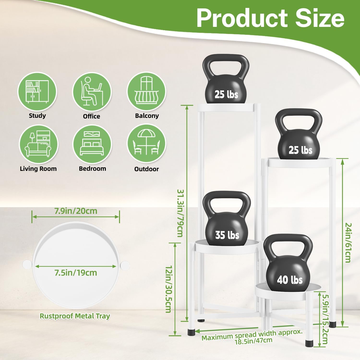 • 7.9-Inch Wide Trays with Rim: This tall plant stand features 7.9-inch round trays, suitable for pots up to 7.5 inches wide. Each tray is designed with raised edges that guard against spills and tipping, keeping your plants safe and steady