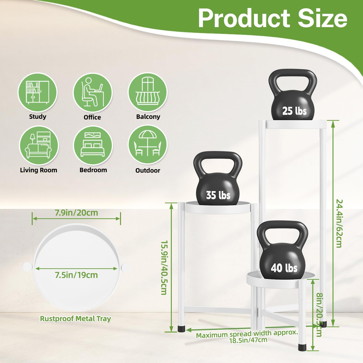 • 7.9-Inch Wide Trays with Rim: This tall plant stand features 7.9-inch round trays, suitable for pots up to 7.5 inches wide. Each tray is designed with raised edges that guard against spills and tipping, keeping your plants safe and steady