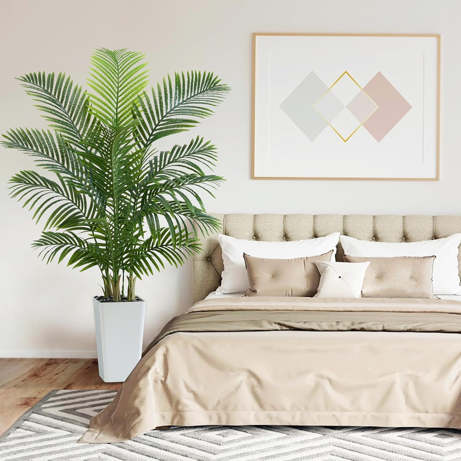 • [Zero Maintenance. Zero Stress.] No green thumb? No problem. This artificial areca palm tree is designed for effortless living—it stays vibrant and full all year round without watering, trimming, or direct sunlight. Whether you’re a busy professional or simply prefer worry-free décorthis faux palm delivers consistent beauty with no upkeep. The UV-resistant materials help preserve its rich color indoors, so it won’t fade or wither with time. Giving you more time to relax and enjoy the view.