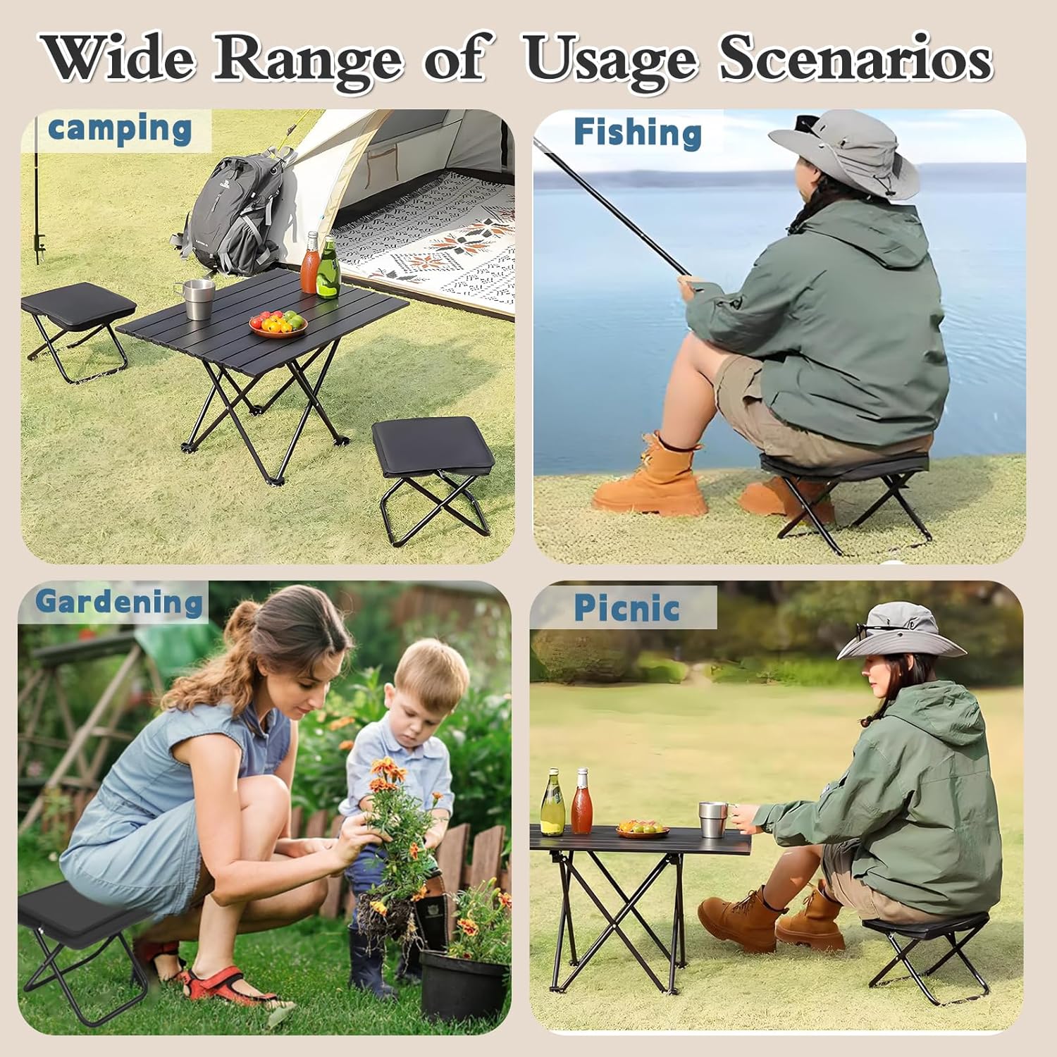 • PORTABLE DESIGN: Ultralight folding stool with included carry bag makes it perfect for outdoor activities and easy transportation