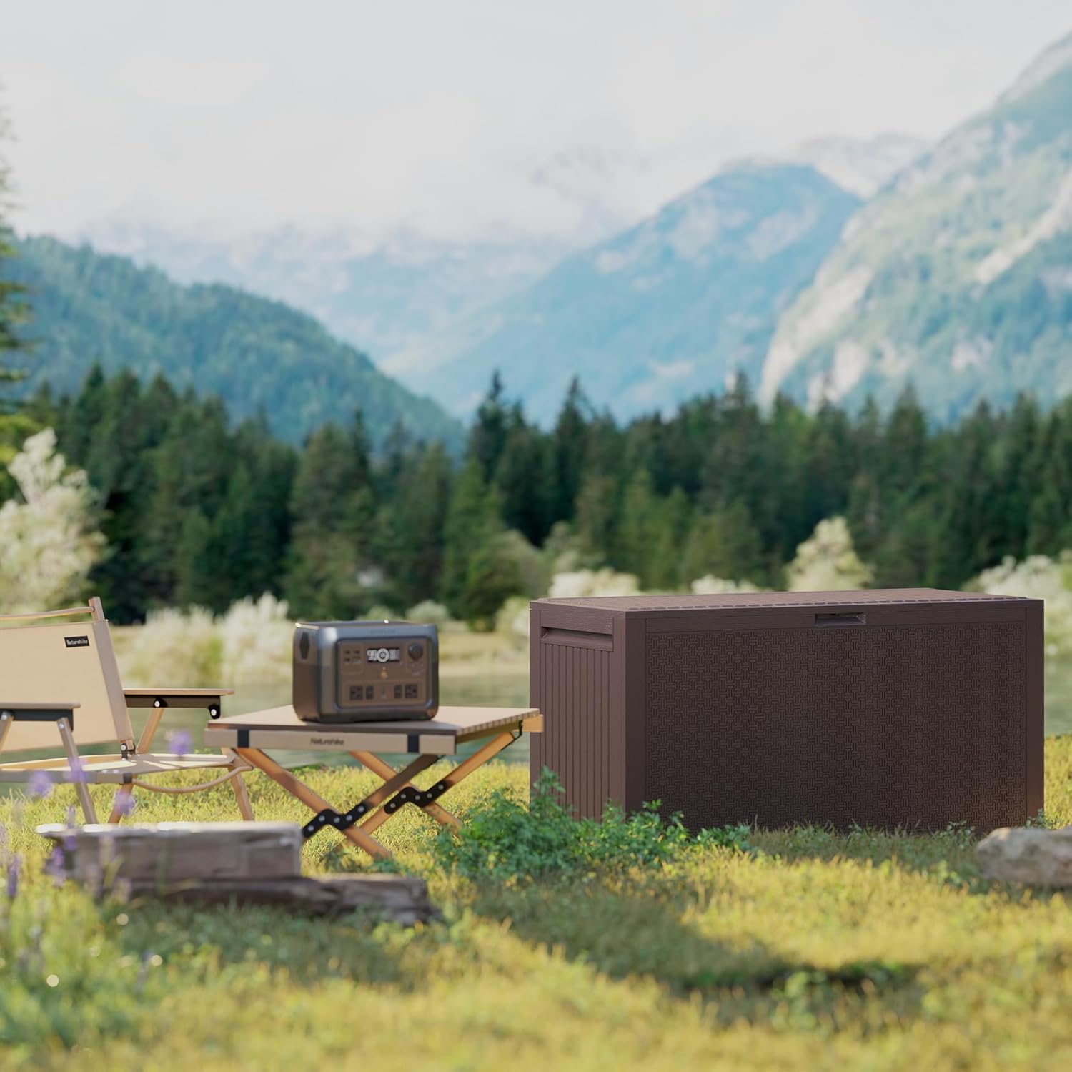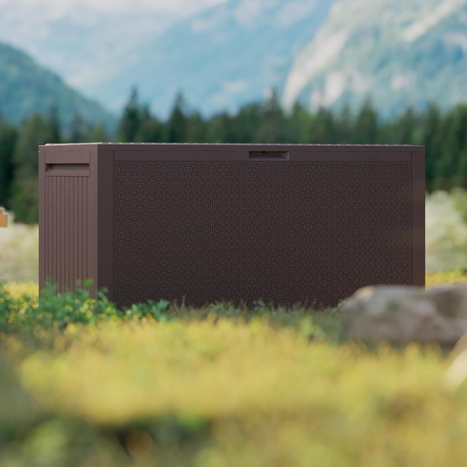 • Rattan-Style Design: Our deck box combines the appeal of Rattan with the durability of resin, providing an elegant and long-lasting storage solution for your outdoor space.