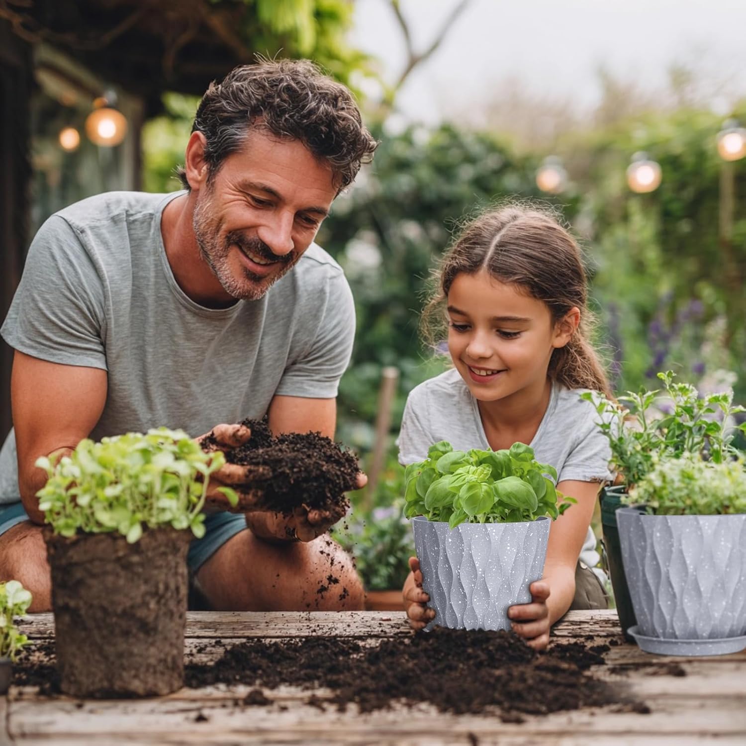 • 【Perfect Size for Versatile Planting】These 7 inch flower pots bulk are ideally sized for small to medium houseplants, including: Pothos, Snake Plant, Aloe Vera, ZZ Plant; African Violet, Miniature Roses; Mint, Basil; Succulents & Cacti. The decorative plant pots make a fantastic gift for friends and family who love growing plants