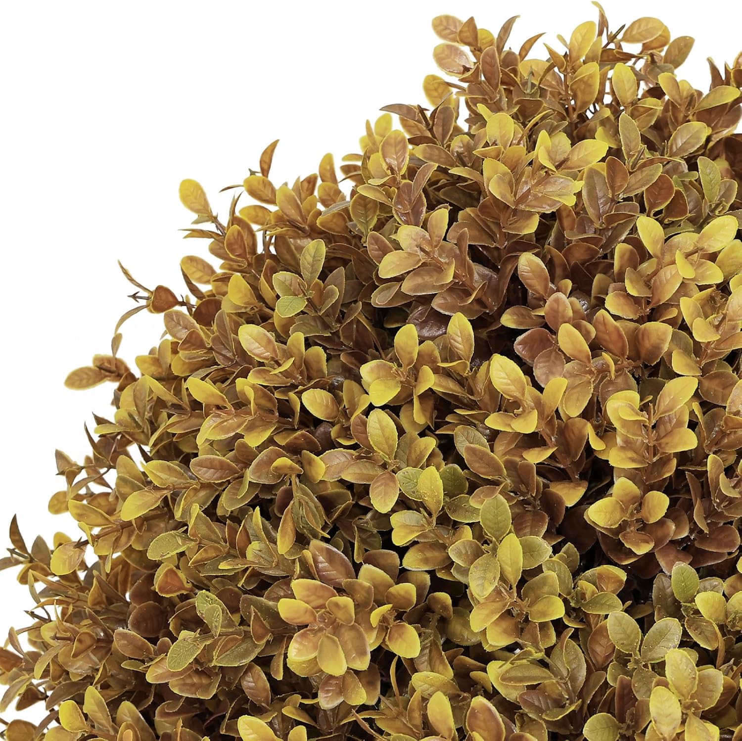 • Realistic Fall Color & Texture: Each faux topiary ball bush features realistic autumn-toned boxwood foliage in rich golden yellow, these boxwood plants look like real fall foliage. Each ball bush features a full, lifelike shape—perfect artificial outdoor shrubs for seasonal curb appeal.