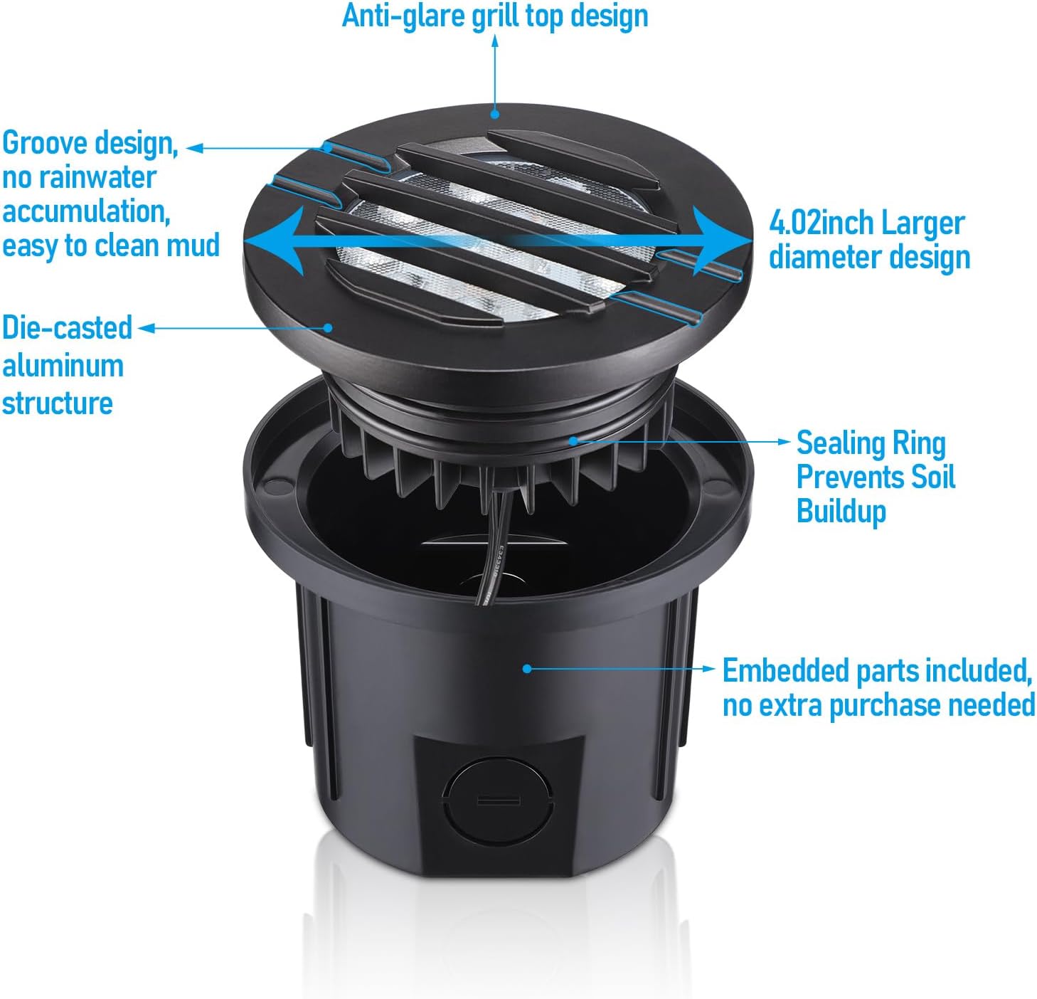 • Safe for Outdoor Use: Die-casted aluminum housing makes this led in-ground light has perfect corrosion resistance and heat dissipation. IP67 waterproof and -4℉-104℉ working temperaturemakes it can work under harsh weather