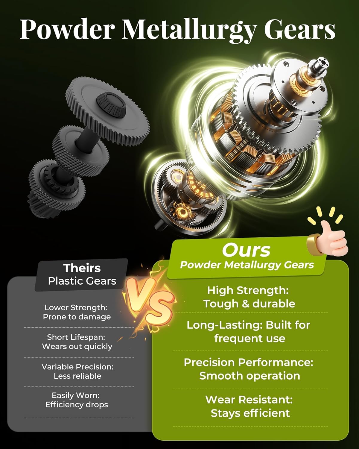 • 2-in-1 Cutter: This bush trimmer has a 5.3" wide grass blade and a 9" long hedge trimmer blade. The long blade( MAX clipping thickness 0.3'') is designed for trimming thin shoots on hedges, bushes, small trees, and ornaments. The short blade( MAX cutting width 4.8'') is designed for shearing grass, weeds, and edge sections of lawn. Thanks to the powder metallurgy gears, it ensures tough, durable strength and long-lasting using life
