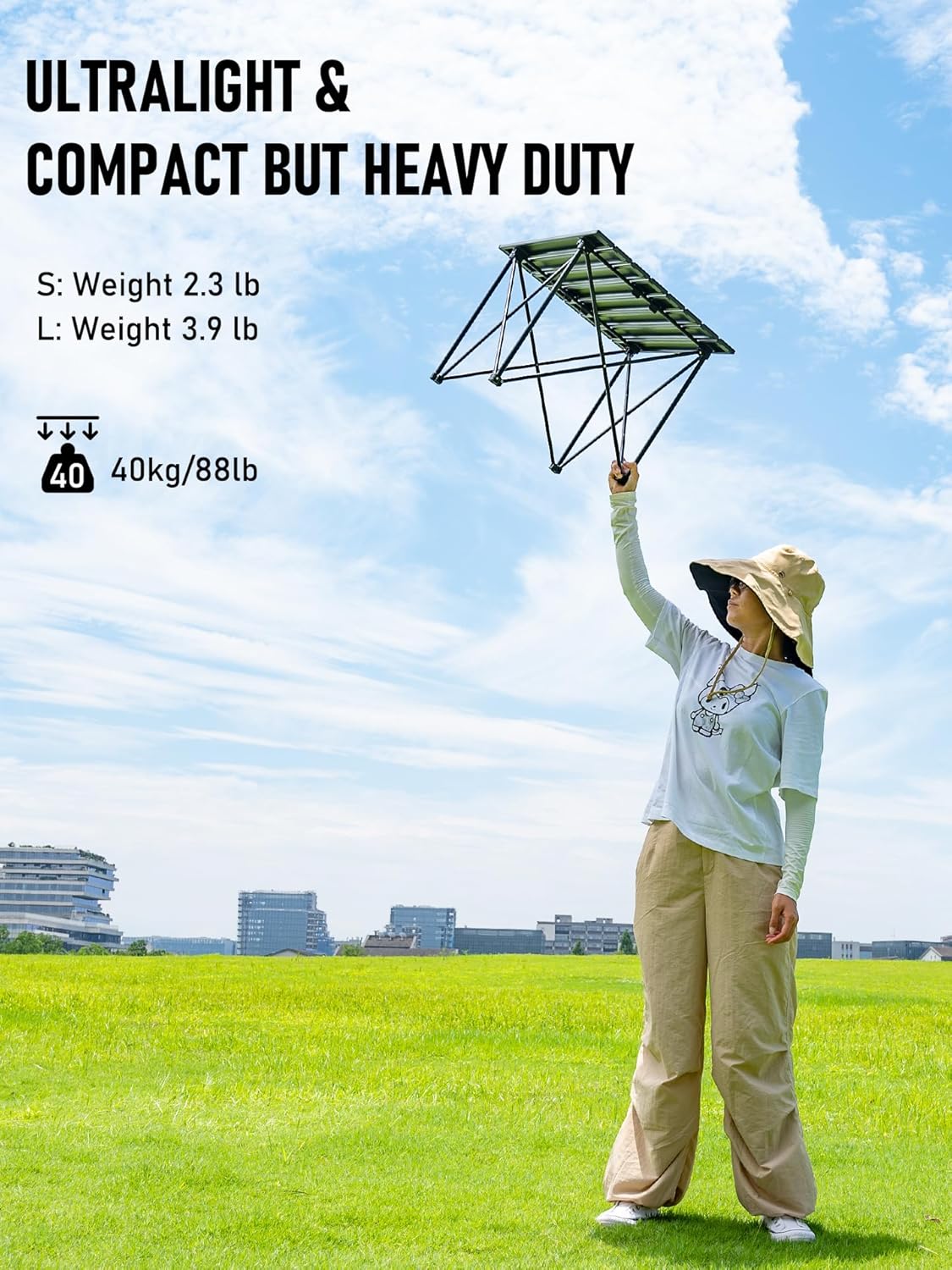 • Ultralight & Compact But Heavy Duty – Made from Aerospace-grade Aluminum Alloy, it weighs just 2.3 lbs but supports up to 88 lbs. Packs down to 16.5 × 5.5 × 2.76 inches. Includes a convenient carry bag for easy transport and storage