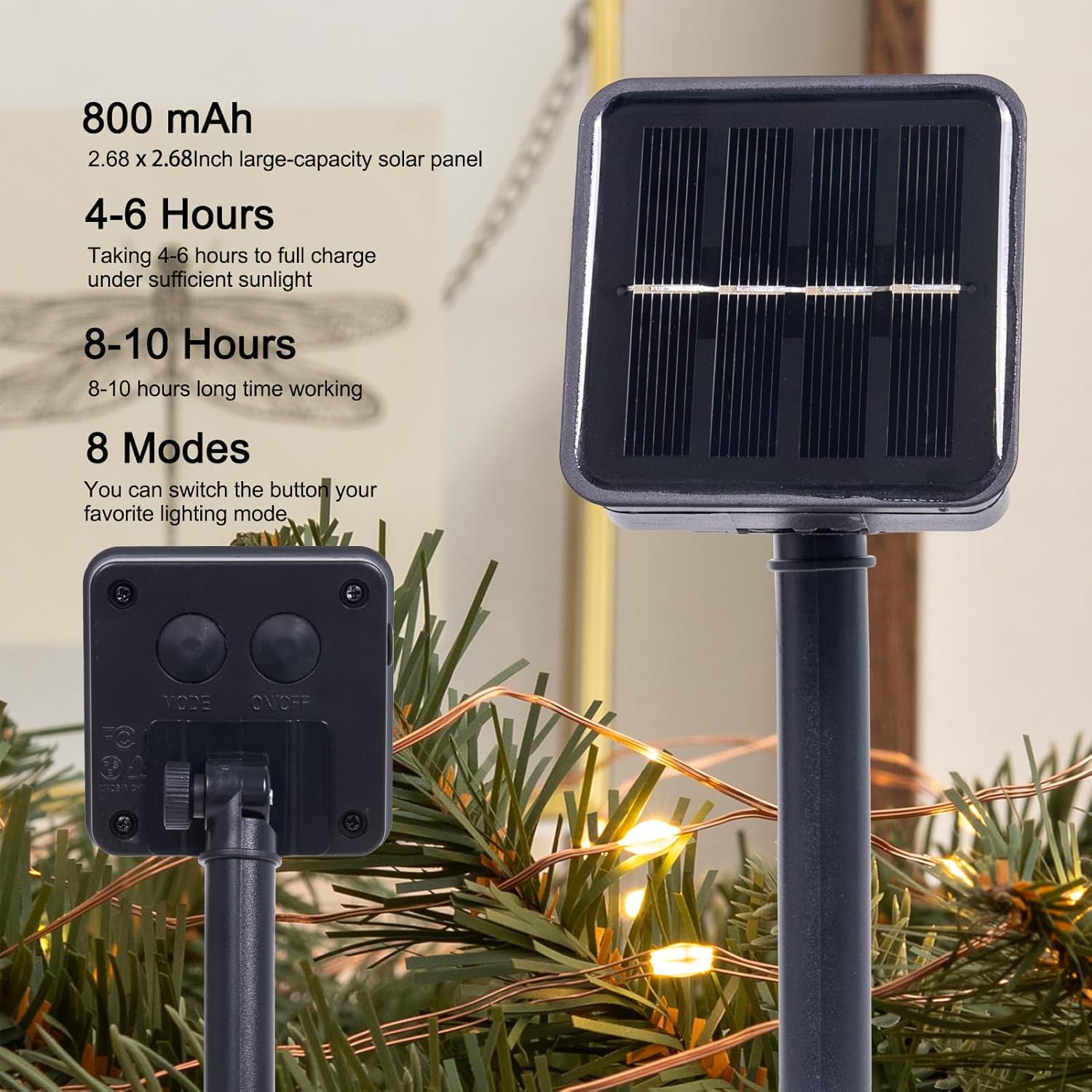 • Tangle-Free Design & Copper Color Wires: The solar fairy string lights inclued 3-copper wires.Extra long bendable copper wire could be shaped into any symbols.No need for complicated wiring, just fix the solar panel in the direct sunlight, hang the light strings at will, and start your eco-lighting journey instantly.With light weight and small size, it is portable and convenient for camping and traveling