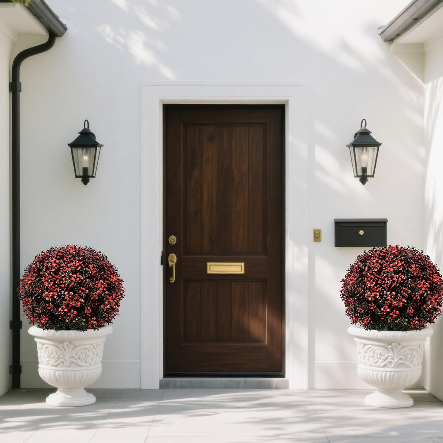 • 🌿Realistic Boxwood Topiary Ball Trees:made from high-quality materials for a natural look for year-round. Lifelike design:new red+green boxwood leaves like red flowers growing on the trees you planted.