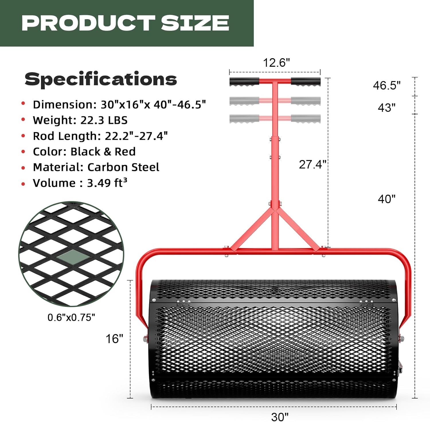 • [Thickened Diamond-Shaped Mesh] Built with a thickened diamond-shaped metal mesh, this Compost Spreader stands up to rugged use. The powder-coated steel frame adds corrosion resistance, ensuring long-term performance of your compost spreader for lawn.